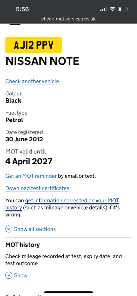 Fresh MOT till 4 April 2027