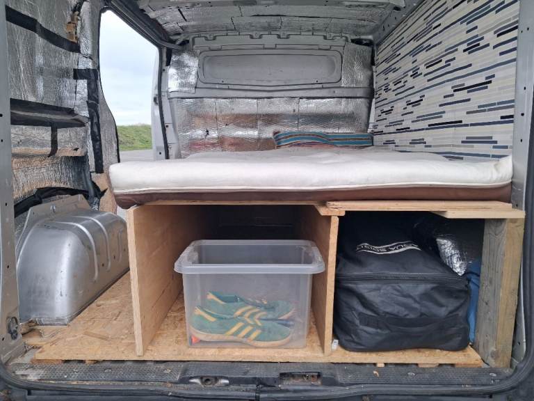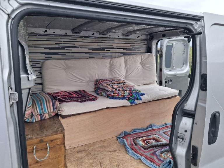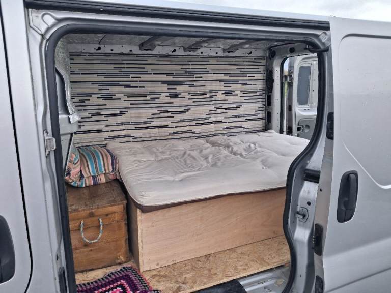 Long MOT - 26 Nov. 2026 , Silver SWB Primastar with bulkhead intact , body in reasonable condition for the year & milage reasonable too. This is a daily use commuter not a work van , so milage with increase. My covert camper ,fully insulated with floor panels,most other panelling complete. 6ft ×4ft bed converts to bench seat or single,with plenty of storage space in either setup. 3 seatbelts , access to rear by passenger side sliding door & two rear doors,all of the rear doors with aftermarket secondary locks. the pictures give a fair representation of the condition of the van. £2750 or near offers.