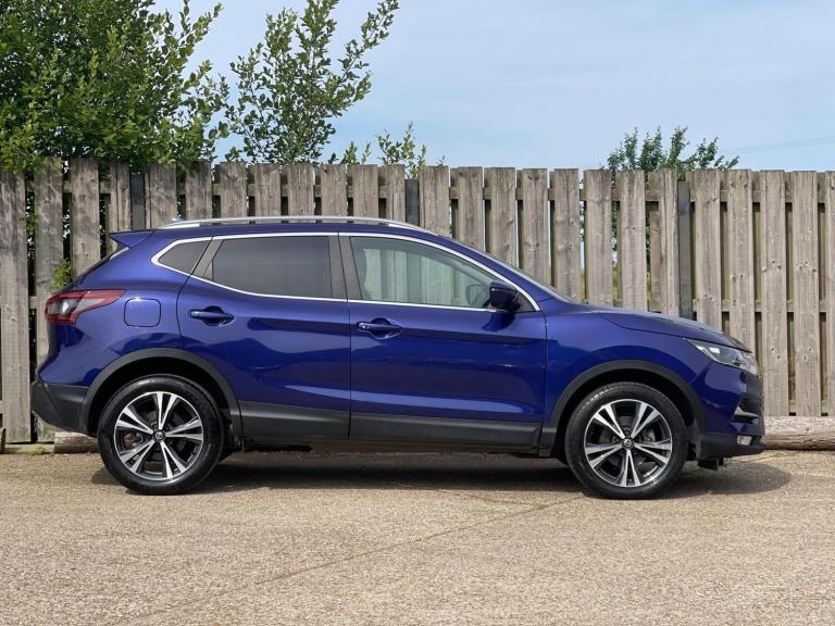 We are pleased to offer this stunning Nissan Qashqai finished in metallic blue with a black and grey upholstery interior. This car has a huge spec including panoramic glass sun roof, 360-degree cameras, lane departure assist, satellite navigation, dual zone climate control, all round parking sensors, cruise control, automatic headlights, automatic rain sensors. Comprehensive finance packages available, please call us to enquire. All our cars undergo a 52 point safety inspection, a brand new service, come with a FREE 3 month comprehensive warranty as standard (with the option to extend) and we offer nationwide delivery. WARRANTY AVAILABLE + PART EXCHANGE WELCOME + NATIONWIDE DELIVERY AVAILABLE
