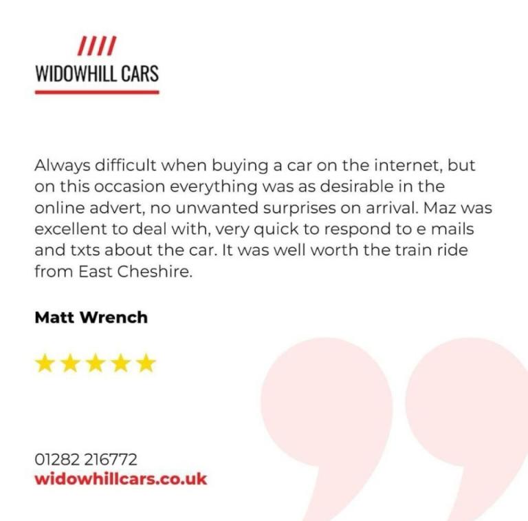 FREE 12 MONTHS MOT PRIOR TO PURCHASE + FREE 6 MONTHS WARRANTY INCLUDED + FREE 6 MONTHS BREAKDOWN COVER INCLUDED + HPI CLEAR + FULLY VALETED AND PREPPED + PART EXCHANGE WELCOME + NATIONWIDE DELIVERY AVAILABLE + SERVICE HISTORY AVAILABLE + FULL LOGBOOK. CAR IS IN EXCELLENT CONDITION FOR ITS AGE AND MILEAGE WITH A FAULTLESS DRIVE! NO ISSUES AT ALL - NO LIGHTS ON DASH - NO KNOCKS OR BANGS - EXCELLENT CONDITION INSIDE AND OUT. PLEASE CALL OR MESSAGE US FOR MORE INFORMATION OR TO BOOK A TEST DRIVE - OUR ADDRESS IS - (WIDOWHILL CARS BURNLEY) UNIT 2 HEASANDFORD INDUSTRIAL ESTATE WIDOWHILL ROAD BURNLEY BB10 2TN. MORE STOCK ON WEBSITE WHICH CAN SUIT YOUR BUDGET. WE ARE OPEN MONDAY TO SATURDAY 9AM-5PM, SUNDAY - 10AM-3PM