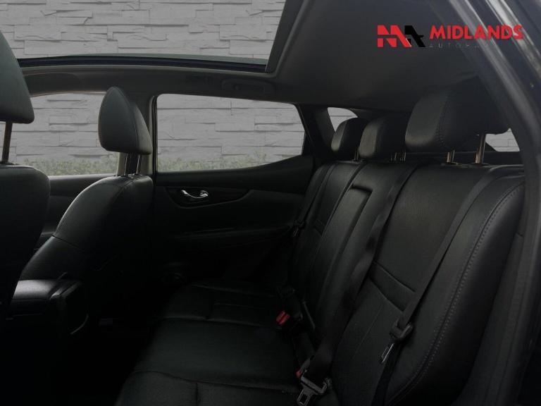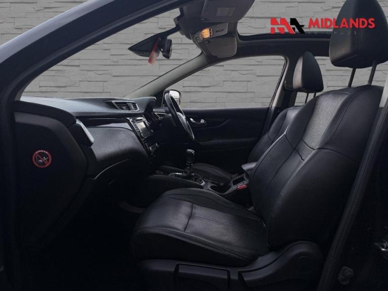 LOVELY NISSAN QASHQAI TEKNA MANUAL WITH FULL SERVICE HISTORY + FULL BLACK HEATED LEATHER SEATS + SAT NAV + BLUETOOTH + BT AUDIO + DAB RADIO + MEDIA INTERFACE + PANORAMIC GLASS ROOF + 360 PARKING CAMERA + BLIND SPOT ASSIST + CLIMATE CONTROL + PARKING SENSORS + TINTED WINDOWS + CRUISE CONTROL + COMES WITH A 12 MONTH AA WARRANTY AND A FRESH 12 MONTH MOT + AA WARRANTY + FREE NATIONWIDE DELIVERY