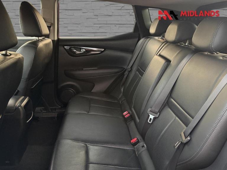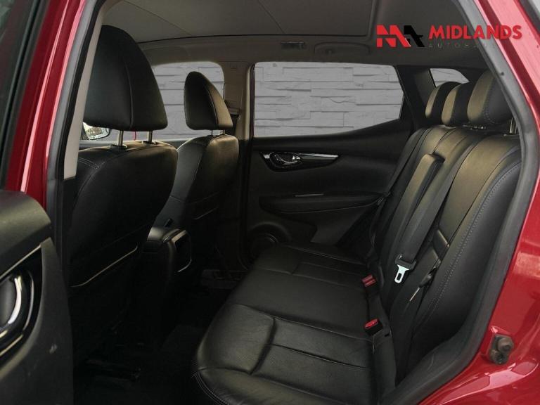 LOVELY NISSAN QASHQAI TEKNA MANUAL WITH FULL SERVICE HISTORY + ONLY ONE FORMER KEEPER FROM NEW + FULL BLACK HEATED LEATHER SEATS + SAT NAV + BLUETOOTH + BT AUDIO + DAB RADIO + MEDIA INTERFACE + PANORAMIC GLASS ROOF + 360 PARKING CAMERA + BLIND SPOT ASSIST + CLIMATE CONTROL + TINTED WINDOWS + CRUISE CONTROL + COMES WITH A 12 WARRANTY AND A FRESH 12 MONTH MOT + FREE NATIONWIDE DELIVERY