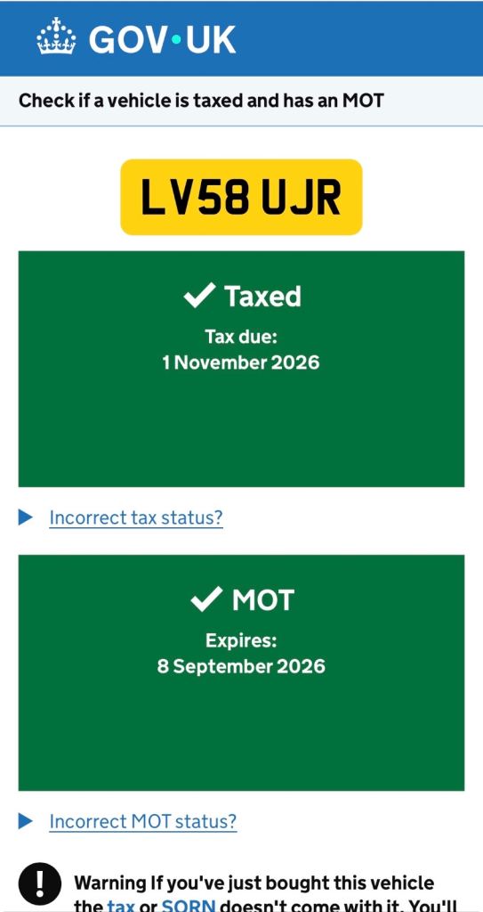 This vehicle has not been reported stolen, scrapped, exported or flagged as unroadworthy.