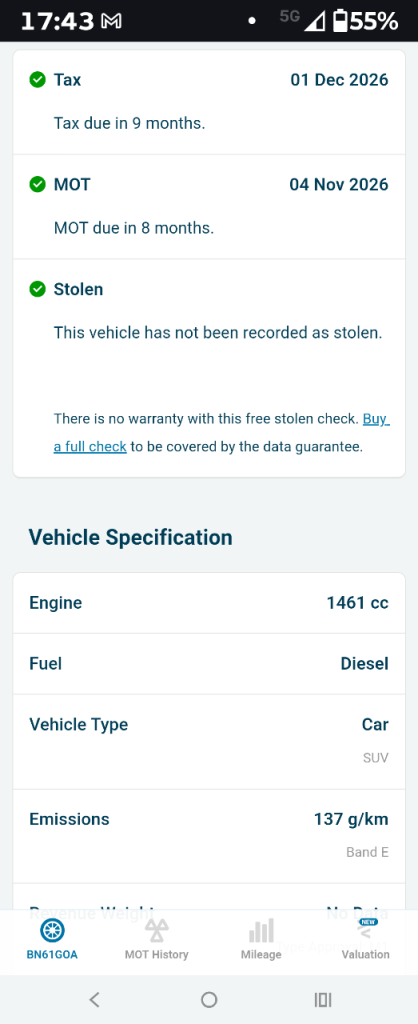 Buy the full report for guaranteed data accuracy, outstanding finance, valuation, milage check & VIN match for £9.99 (normally £19.99)