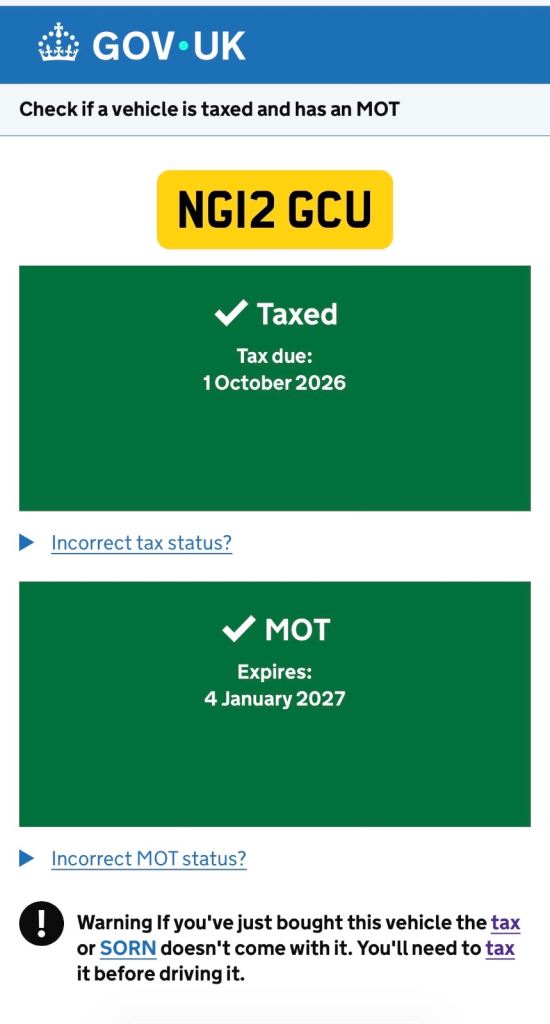 This vehicle has not been reported stolen, scrapped, exported or flagged as unroadworthy.
