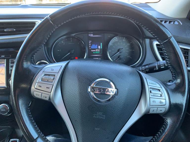 Here we have a well maintained and looked after Nissan in fantastic condition throughout with only 2 former keepers, highly specked out with Panoramic roof, Electric sun blind, Full leather seats, Heated front seats, 360 camera, Colour screen sat nav, Folding wing mirrors, Blind spot monitoring, MOT expires 30/09/2026 , Service history includes past mot certificates and receipts for service and cambelt& water pump change at 56635 mls, This 2016 Nissan Qashqai dCi Tekna offers exceptional value with its remarkably low mileage of just 72100 miles, a clear vehicle history check, and a Euro 6 compliant 1.5L diesel engine. As a Tekna trim, this Qashqai comes equipped with desirable features such as Bi-LED headlights, Intelligent Key with keyless entry, rear parking sensors for easier manoeuvring, and Bluetooth integration for seamless phone connectivity. The dual zone climate control ensures comfort for all occupants, making this a well-appointed and practical choice. The highlights of this Nissan Qashqai demonstrate its superior efficiency and affordability compared to similar vehicles. It boasts an impressive fuel economy of 65 + miles per gallon, placing it in a low insurance group and emitting low CO2, which indicates lower running costs and a reduced environmental impact and just £20 vehicle tax per year. These factors combined make this Qashqai a sensible and economical option for everyday driving.