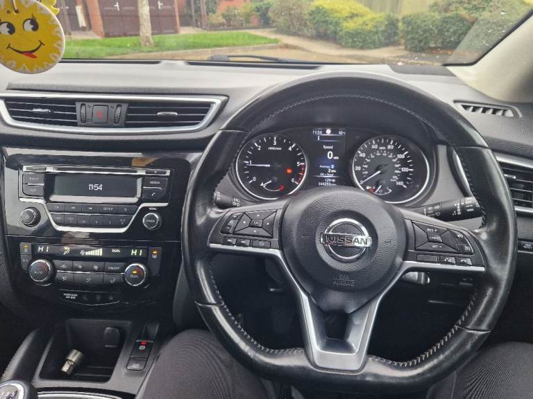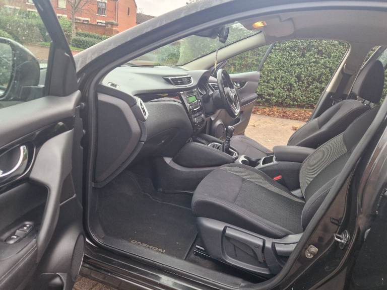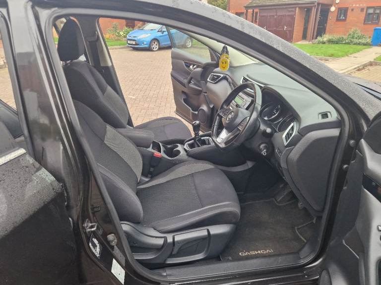 This 2017 Nissan Qashqai Acenta comes with a 1.5 DCI diesel (110 HP) engine and a Start/Stop system, offering excellent fuel efficiency and a smooth, reliable drive. Finished in black exterior with a black cloth interior, the car looks modern and clean.
