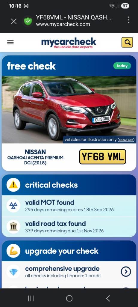 Buy the full report for guaranteed data accuracy, outstanding finance, valuation, milage check & VIN match for £9.99 (normally £19.99)