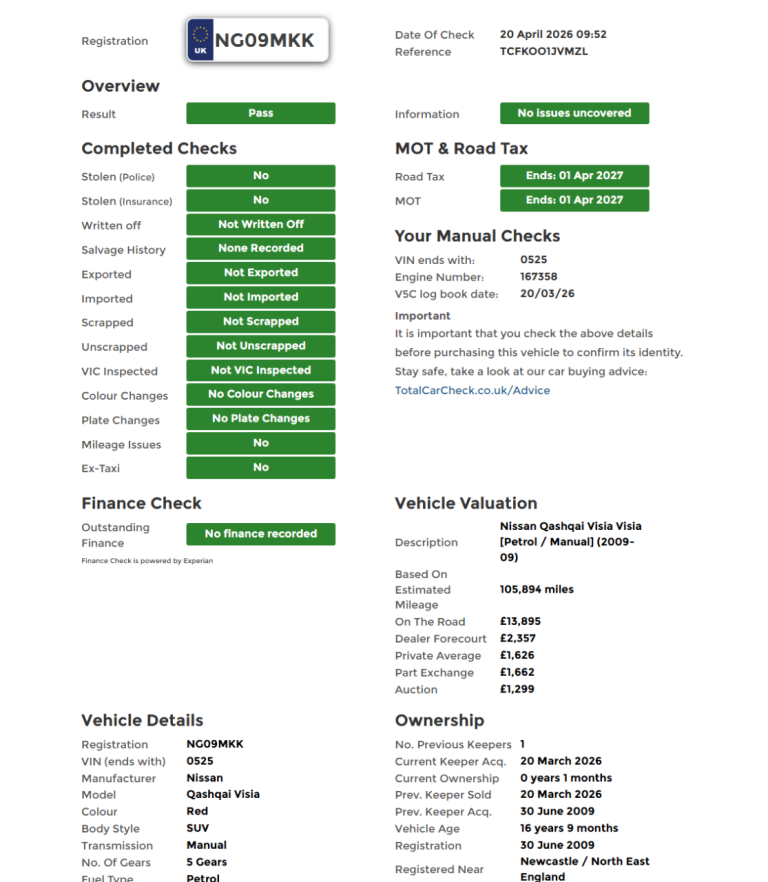 Buy the full report for guaranteed data accuracy, outstanding finance, valuation, milage check & VIN match for £9.99 (normally £19.99)