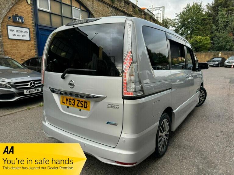 Nissan Serena 2.0 Petrol Hybrid 8 seats Auto High Way 5dr 360 CAMERA+WARRANTY+AA+2KEYS+ Key facts Print summary Model year: 2014 (63) Fuel type: Petrol Hybrid Mileage: 45,000 Transmission: Automatic Engine size: 2.0L Colour: Silver + FINANCE AVAILABLE+2.0 PETROL HYBRID+8 SEATS+AUTO+6 MONTHS COMPREHENSIVE WARRANTY INCLUDING PRICE FOR COMPLETE PEACE OF MIND,1 YEAR A A BREAK DOWN COVER+MOT TILL 02/09/2026+360 CAMERA+PAS 4 ELECTRIC WINDOWS,MIRRORS,ELECTRIC FOLDING DOOR MIRRORS,TOUCH SCREEN WIRELESS ANDROID AUTO APPLE CAR PLAY GPS.BLUETOOTH . SAT NAV.YOU TUBE .SCREEN MIRRORING..SMART VOICE CONTROL, TOUCH SCREEN WIRELESS ANDROID AUTO APPLE CAR PLAY,BLUETOOTH .YOU TUBE .SCREEN MIRRORING..SMART VOICE CONTROL.8 SEATER,KEY LESS ENTRY AND DRIVE.TWIN POWER REAR DOORS.FRONT AND REAR PARKING SENSORS,CRUISE CONTROL,AUTOMATIC XENON LIGHTS,DUAL CLIMATE CONTROL,AUX ,USB,ICE COLD AIR CON,REAR PARKING CAMERA,REAR CLIMATE CONTROL,POWER FOLDING SIDE MIRRORS,POWER FOLDING MIRRORS,ARM REST,CRUISE CONTROL,MULTI FUNCTION STEERING WHEEL,PRIVACY REAR WINDOWS,TO MANY EXTRAS TO LIST,ALL USUALL MODEL EXTRAS,LOOKS AND DRIVES SUPERB,HPI CLEAR,PX CONSIDERED,VISIT WEBSITE FOR MORE INFO WWW.VPIUSEDCARSALES.COM