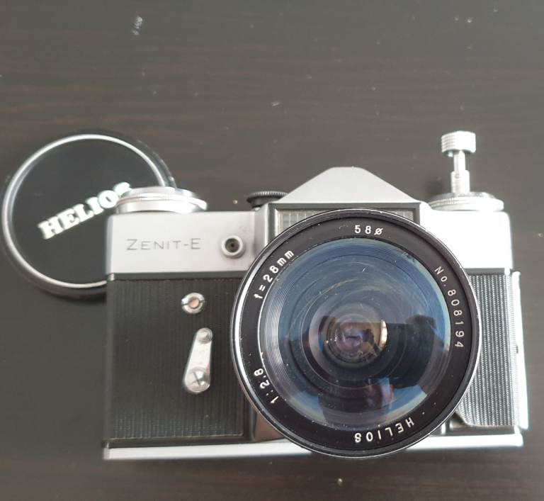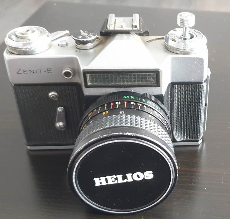 For sale is a classic Zenit-E 35mm SLR film camera with the legendary Helios 44-2 58mm f/2 M42 lens.