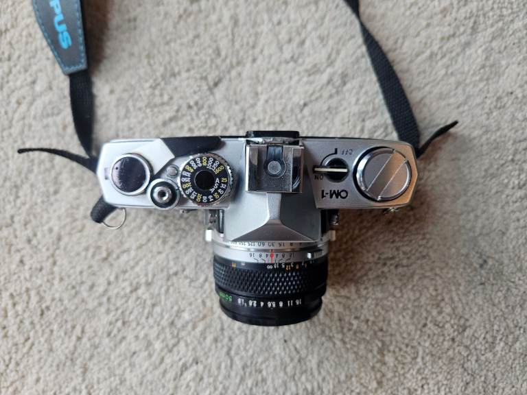 Olympus OM1 35mm SLR film camera with strap and original manual. Lens included.
