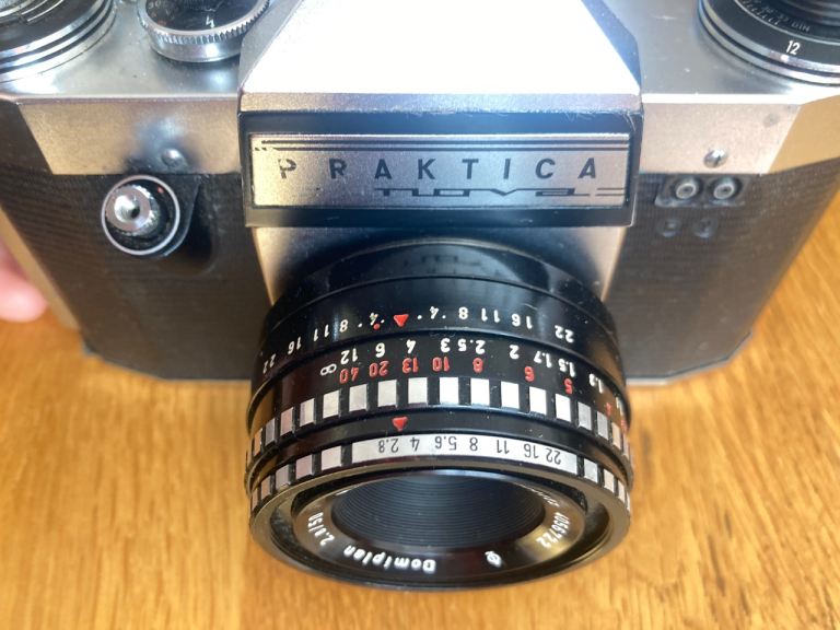 Practika Nova Film SLR brown leather case/ strap, 2.8 50mm lens. Working. With me for past thirty years. From pet and smoke free home. Thanks for looking.