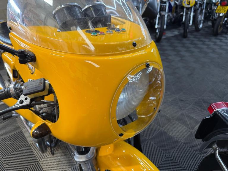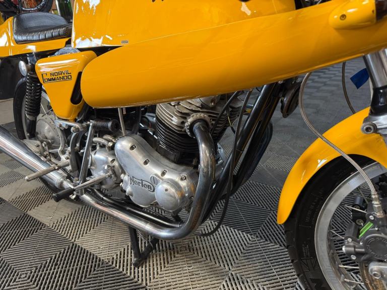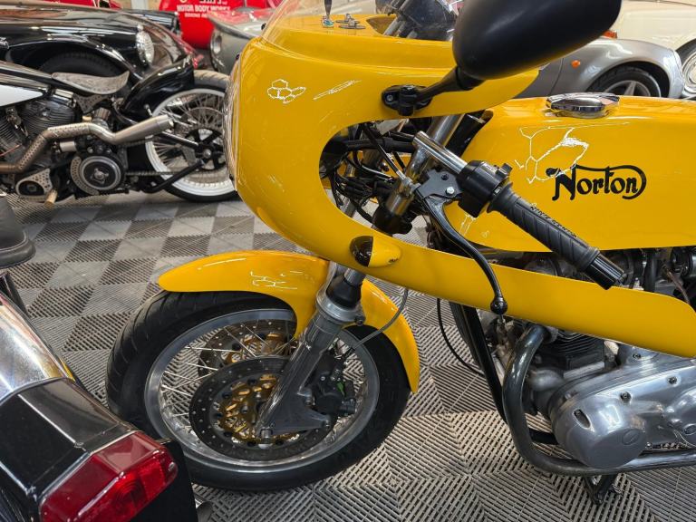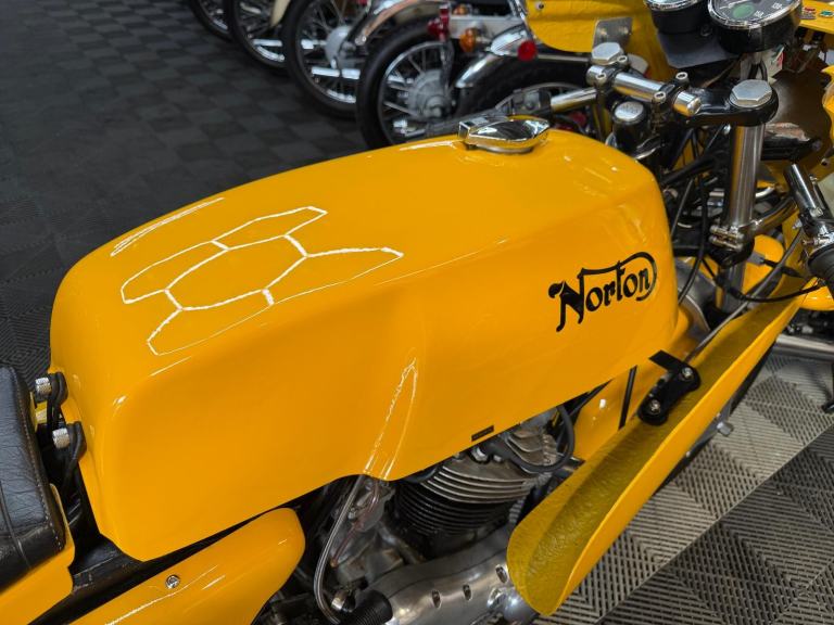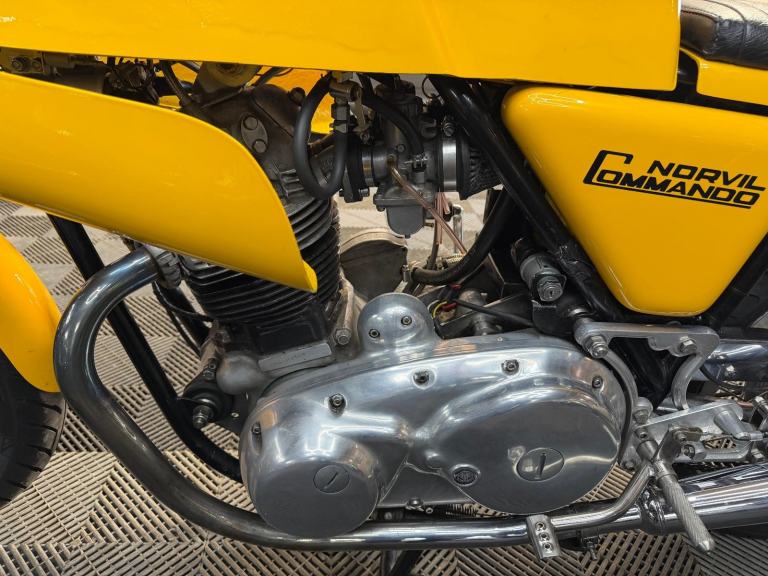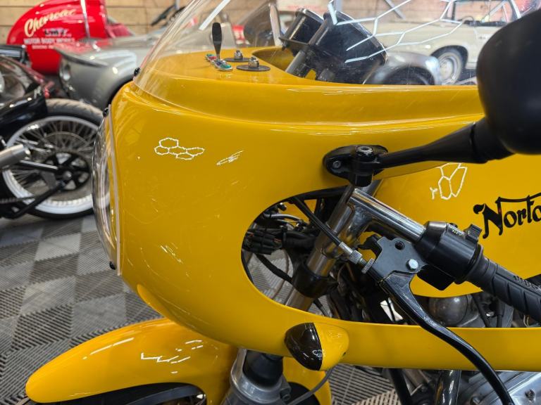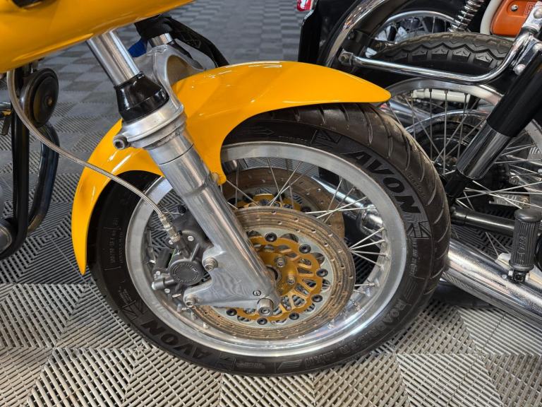The rebirth of Norton has garnered much attention in recent years; meanwhile, at its factory in Burntwood, Staffordshire, marque specialists the Norvil Motorcycle Company are still catering for the original Norton Commando in its various guises. They use new tooling to revised drawings, and manufacture in newer and better materials to modern day tolerances for greatly improved reliability. Based on a 1971 750, this replica Production Racer was built between 2004 and 2017 by the previous owner, who carried out a 'last-nut-and-bolt' restoration, including acquiring a later (circa 1974) 850cc engine and fitting a 920cc 'big bore' conversion. Other works included a top-end overhaul by a local motorcycle mechanic; cylinder head fin repair by SRM; and fitting split-shaft collars to the swinging arm to cure excess movement. Notable features include Norvil twin front disc brakes; Grimeca brake calipers; Maguro master cylinder: Akront wheel rims; stainless steel spokes; belt primary drive conversion; and twin 34mm Mikuni carburettors.