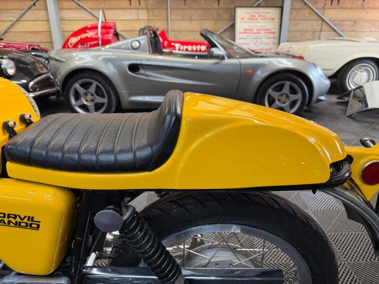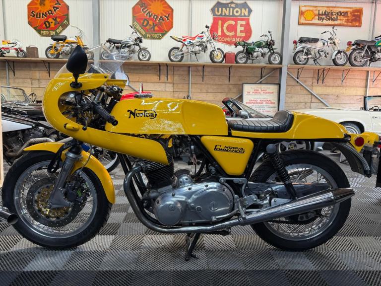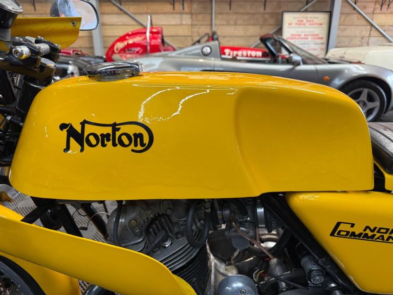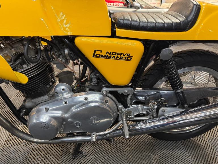 Alongside the stock Commando roadster, Norton Villiers offered a competition version under the 'Norvil' name intended for production class racing. Introduced for 1971, the Commando Production Racer was developed by works rider/engineer Peter Williams and produced in very limited numbers for little more than one season, with a list price double that of other Commandos. The first Commando to be fitted with a disc front brake as standard, the Production Racer came with a tuned engine, clip-on handlebars, rear-set footrests and a distinctive yellow glassfibre fuel tank and bodywork. Genuine examples of this limited-edition rarity are highly sought after by collectors and only very infrequently are they offered for sale; understandably, replicas are popular.