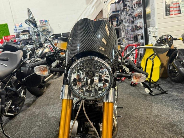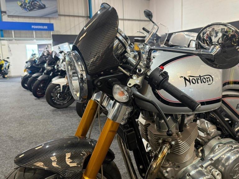 Just arrived in @ Powerslide Derby is this gorgeous Norton Commando 961 Cafe Racer. One of the original handbuilt machines at Donington so extremely rare. Ohlins suspension, carbon fibre and sounds unreal. The bike has covered just 85 miles but has been serviced and will also have a fresh service before leaving