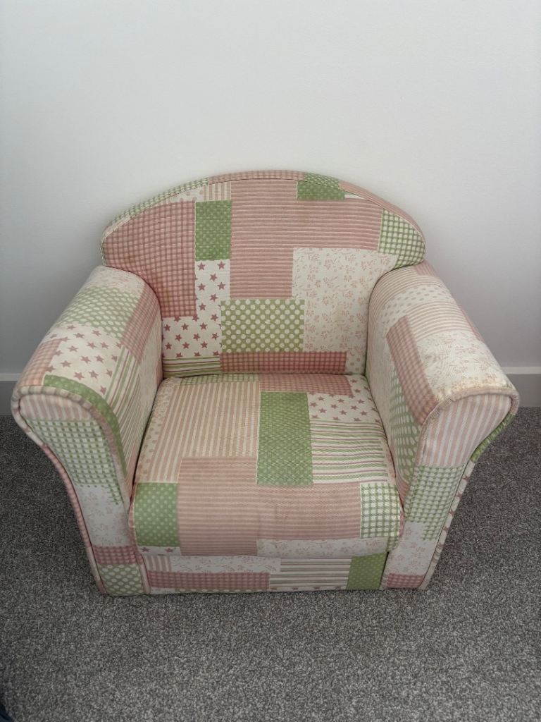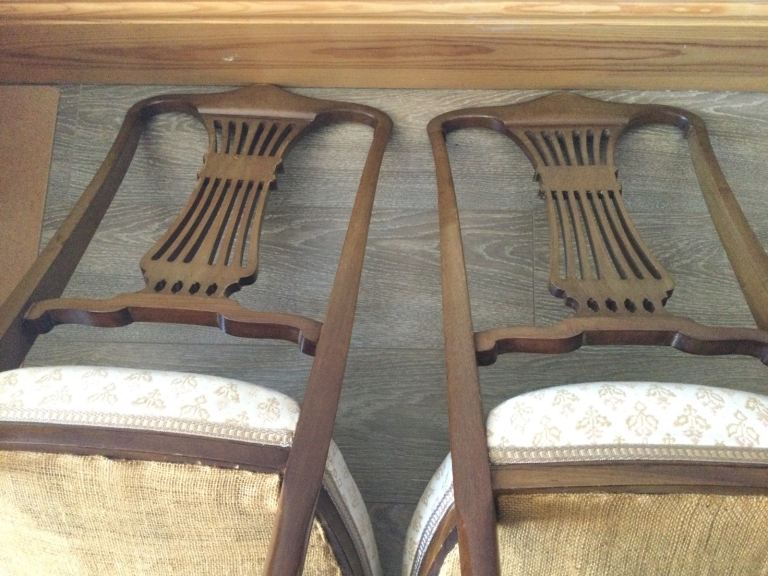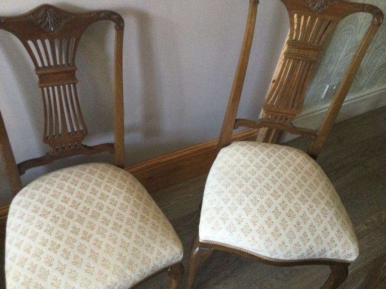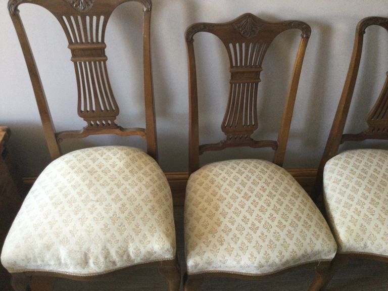 Antique chair in cream pattern 2 low sitting and 2 bit hight siting as in the photo in wood good condition for its age comes from pet and smoke free home collection thank you for looking 😊