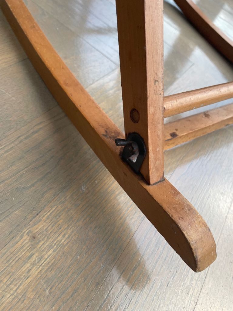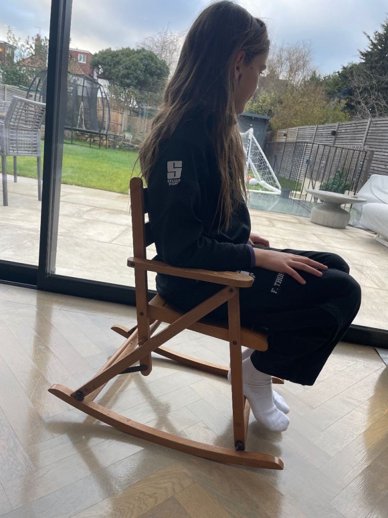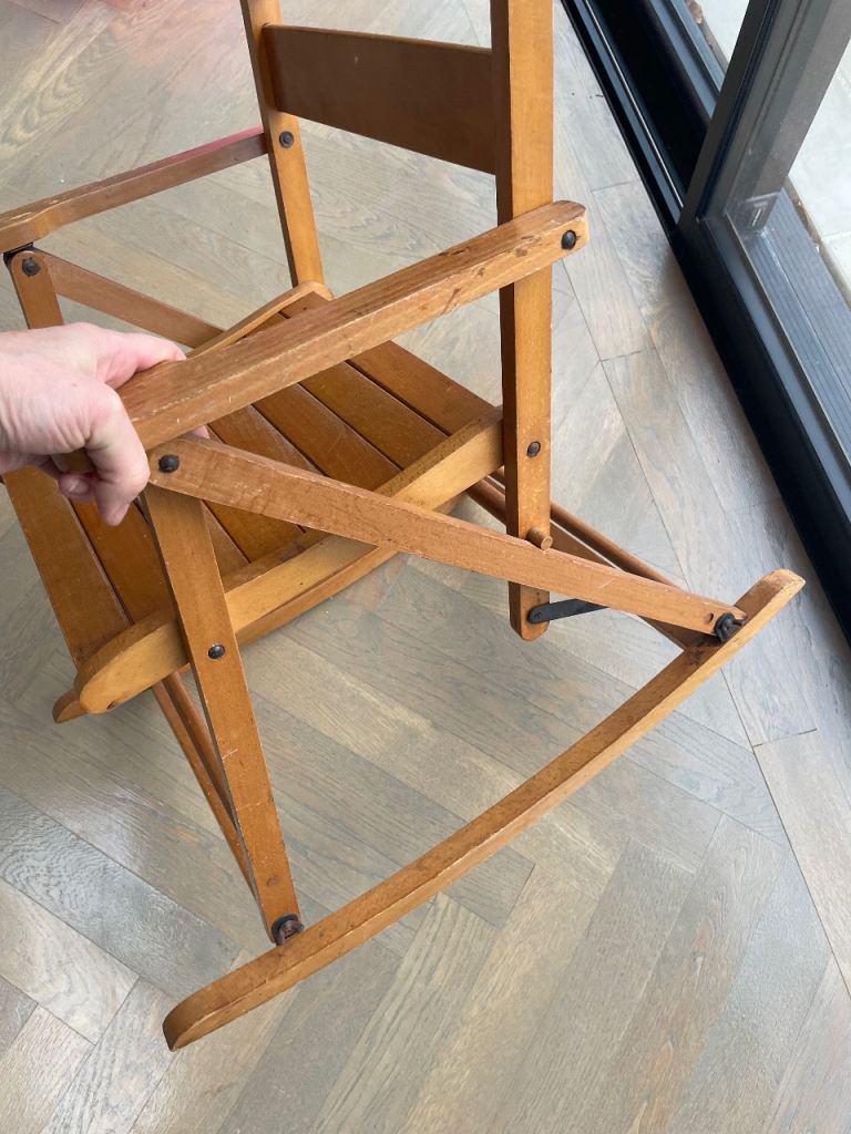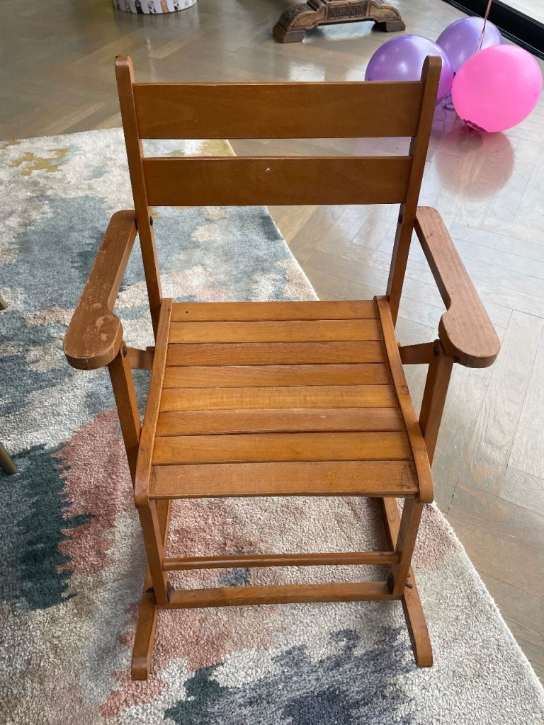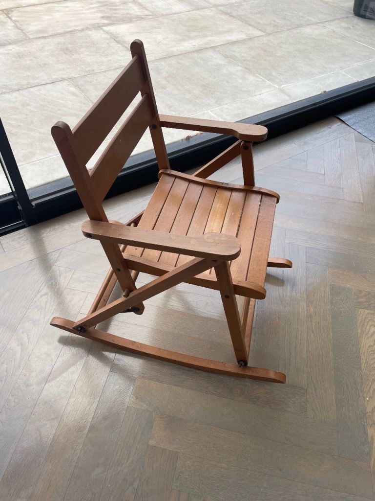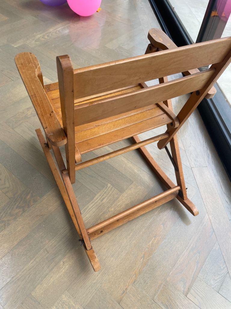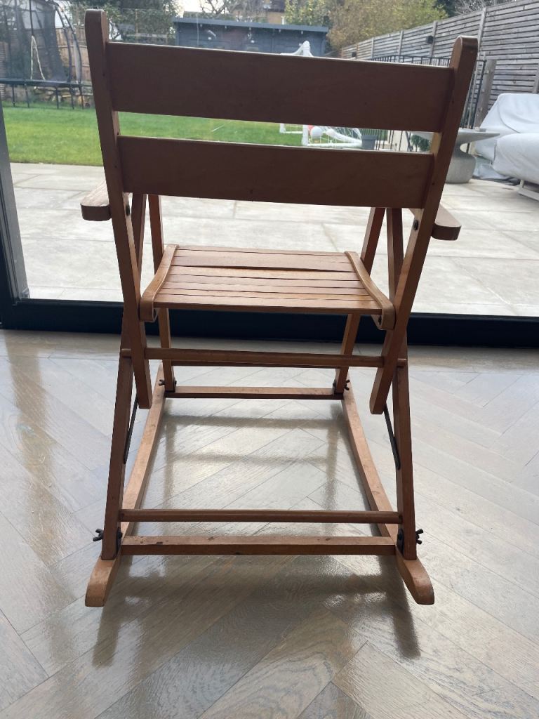 Lovely rocking chair for small children around ages 4-8 years. My daughter is sitting in it in last photo and she is now 9 years old (and tall for her age). This chair has been in my family for years and was mine when I was a child. Would be considered vintage. Is in good condition. Would be lovely painted or just re varnished. I’m so sad to say goodbye to it, but would like it to have a new loving owner. Cash on collection from SW13.