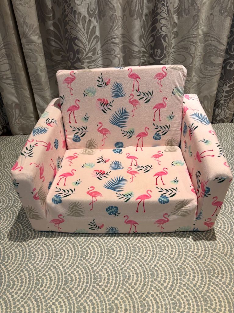Lovely little chair with pink flamingo pattern. Been used but in good condition and very sturdy. If interested ring me or leave a message. If no answer please leave a message and I will get back to you as soon as possible. Thanks