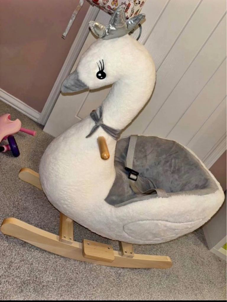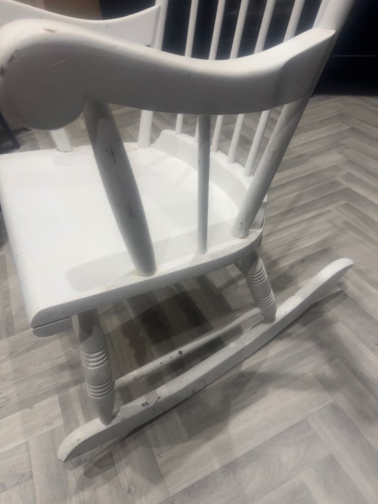 Wooden rocking chair. Upcycle project potentially as it needs redecorating. Otherwise in good condition.