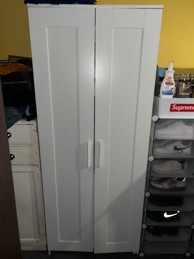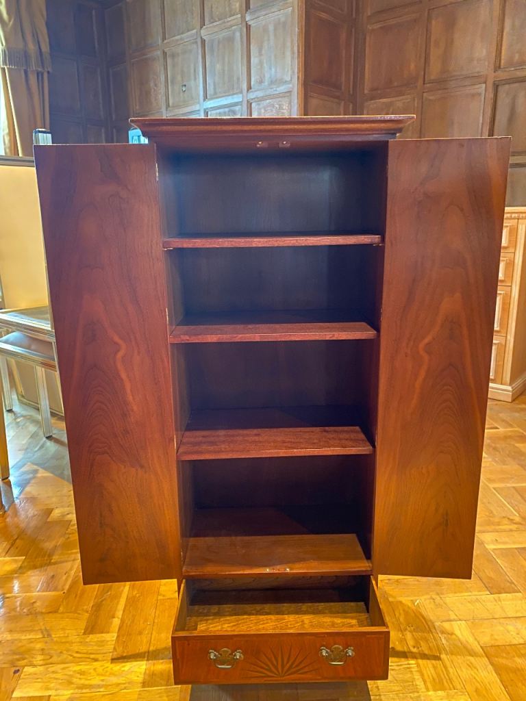 Perfect slim storage piece for small bedrooms, hallways, dressing rooms or as an accent cabinet for linen/small items. Quality piece from a prestigious British workshop.