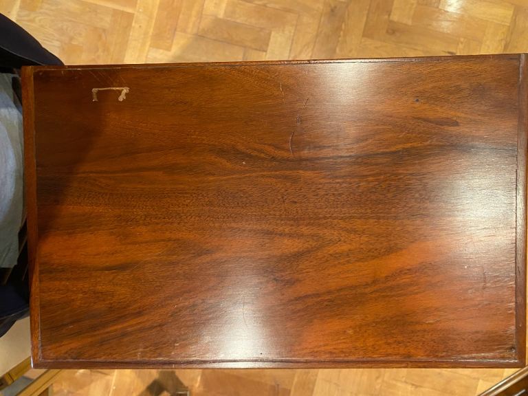 Very good used condition overall – veneer intact with no lifting, cracks or major damage. Doors and drawers operate smoothly, lacquer glossy. Minor cosmetic defects: small chip on the top edge corner (see close-up photo), light surface patina and usage marks (typical for natural wood of this age). Sold as-is, no repairs or restoration done.