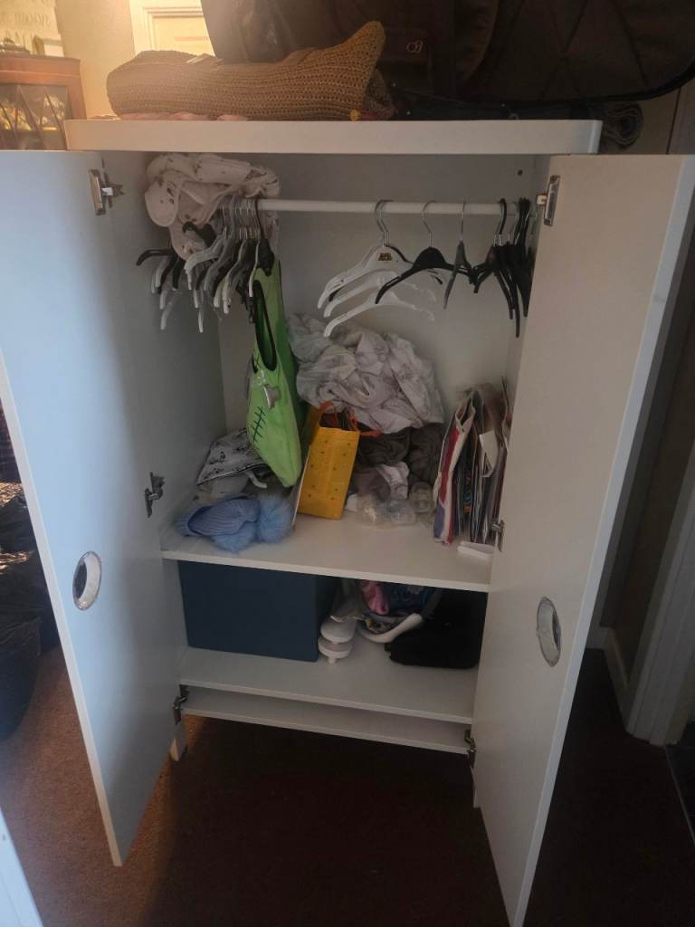 Small chip on front but has actually never been used as a wardrobe only for storing bits.