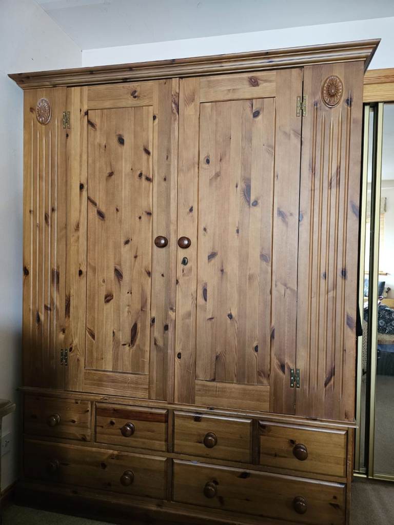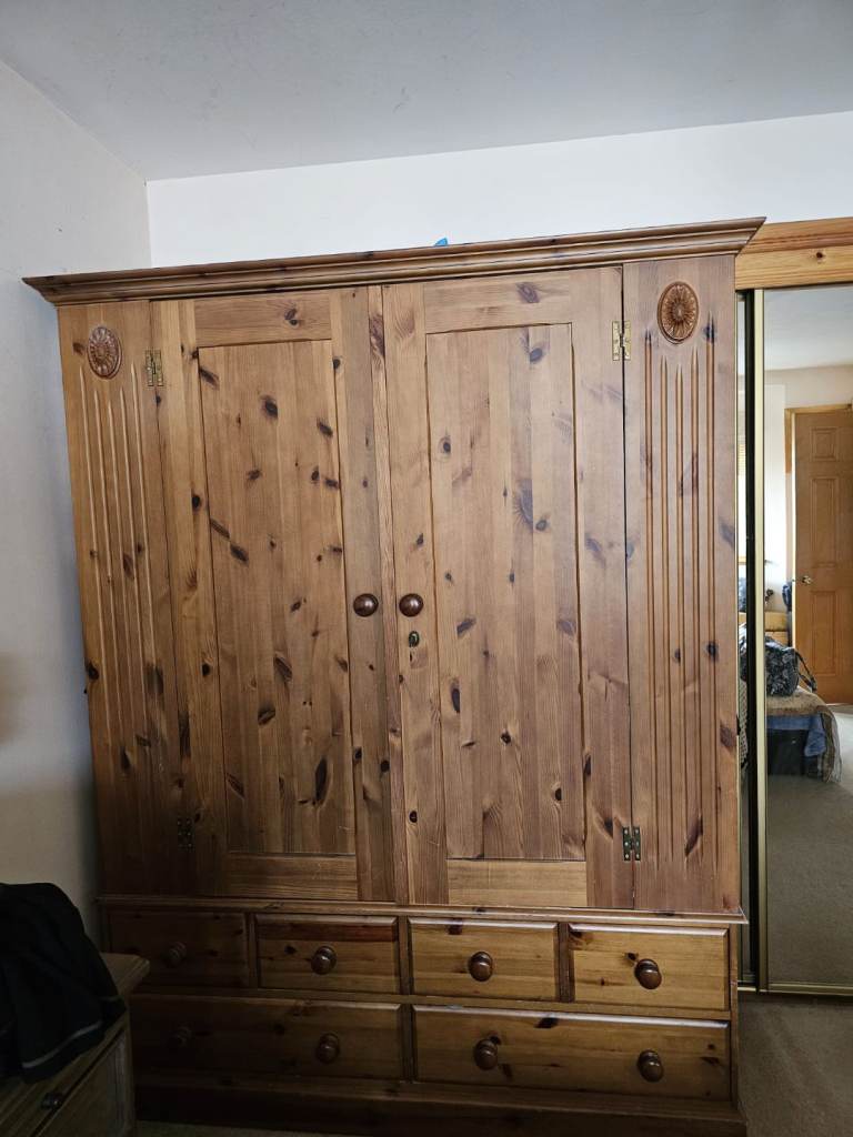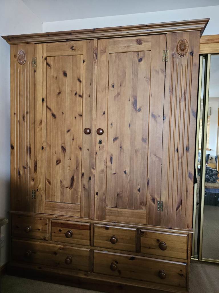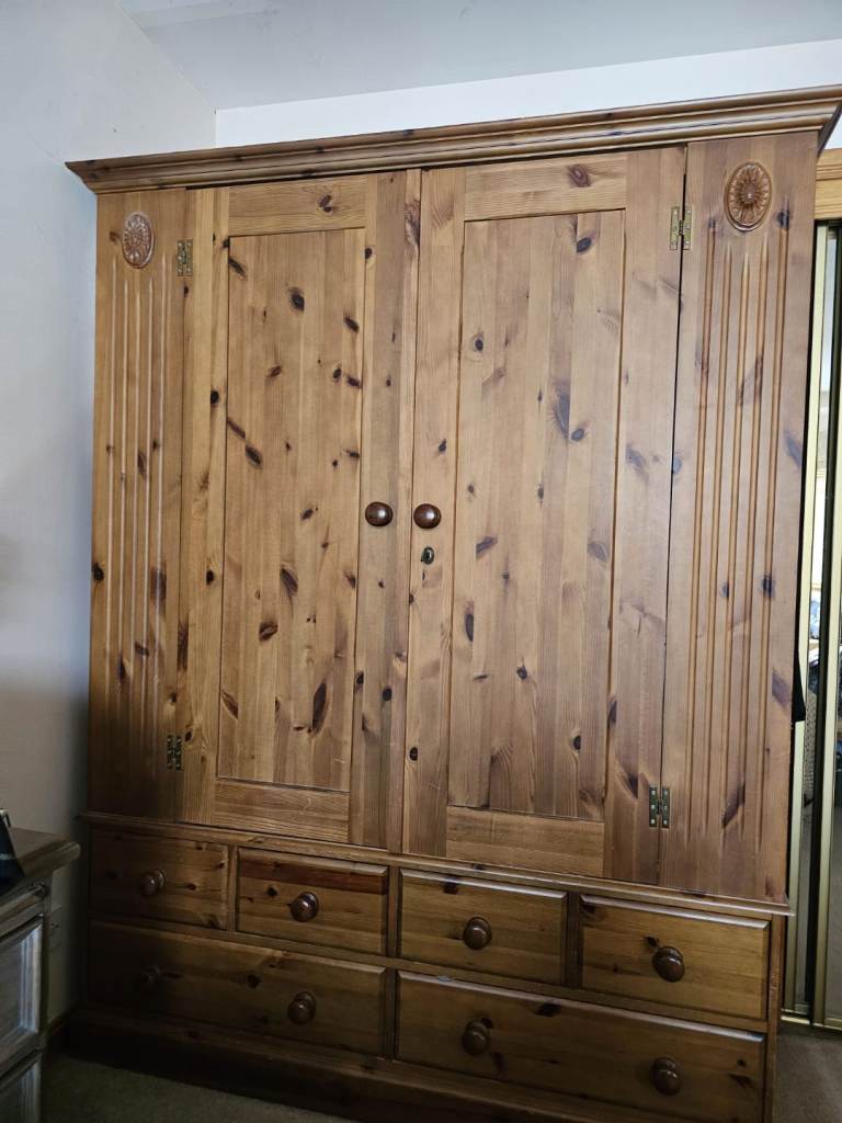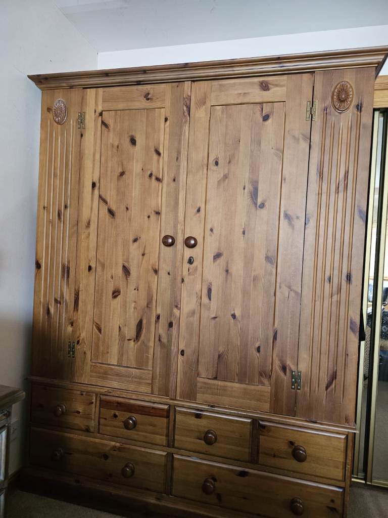 Large Double Wardrobe complete with 4 small and 2 large drawers. Very good condition, well made piece of furniture.