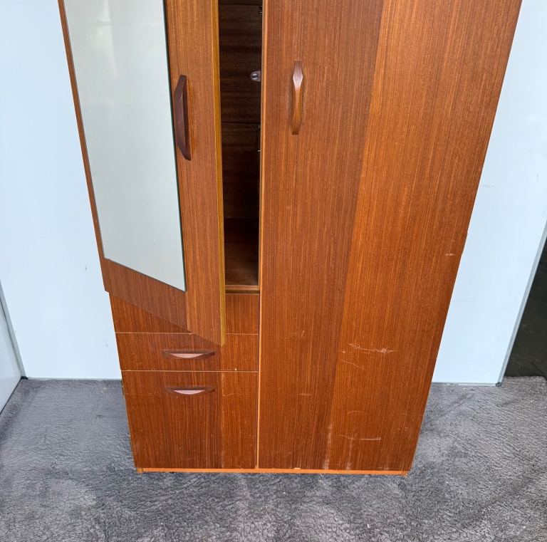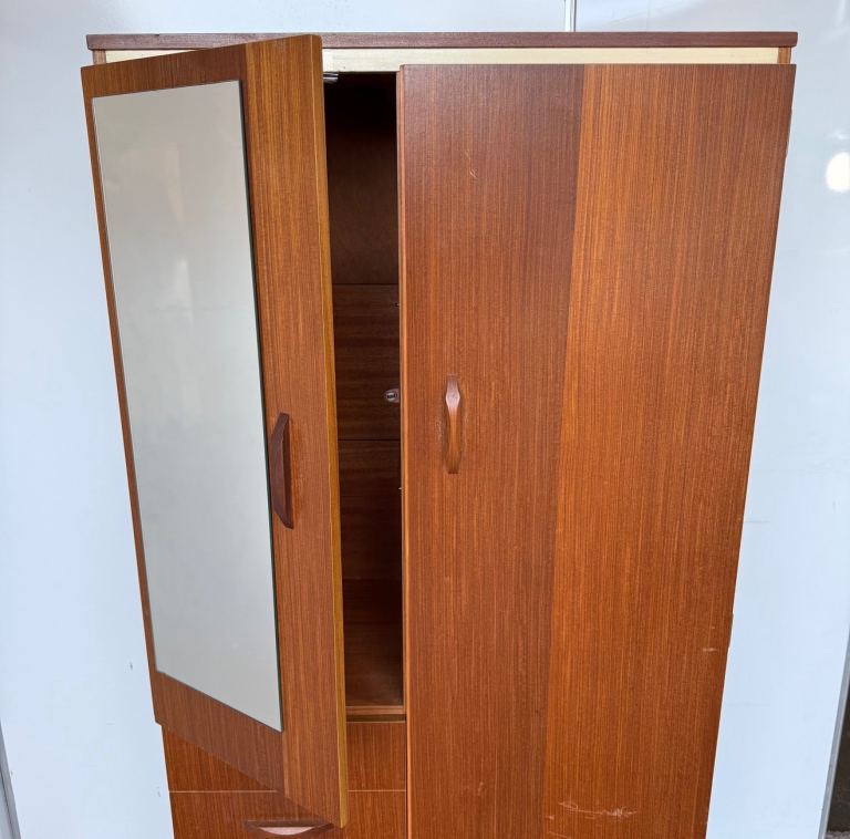 FREE DELIVERY Oak 3 doors and 2 drawers wardrobe with mirror, in good condition.