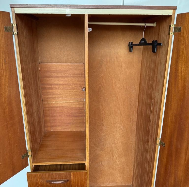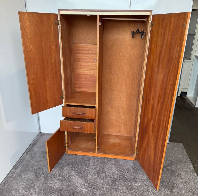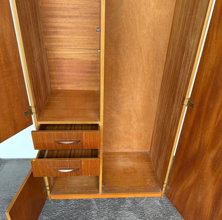 Oak 3 doors and 2 drawers wardrobe with mirror, in good condition.