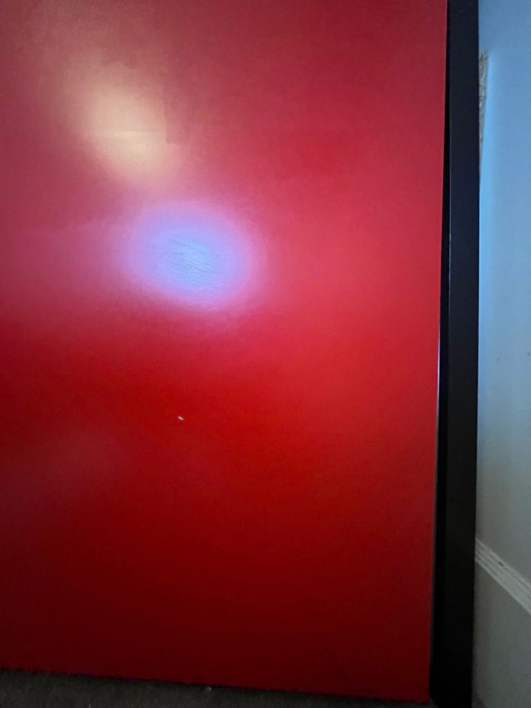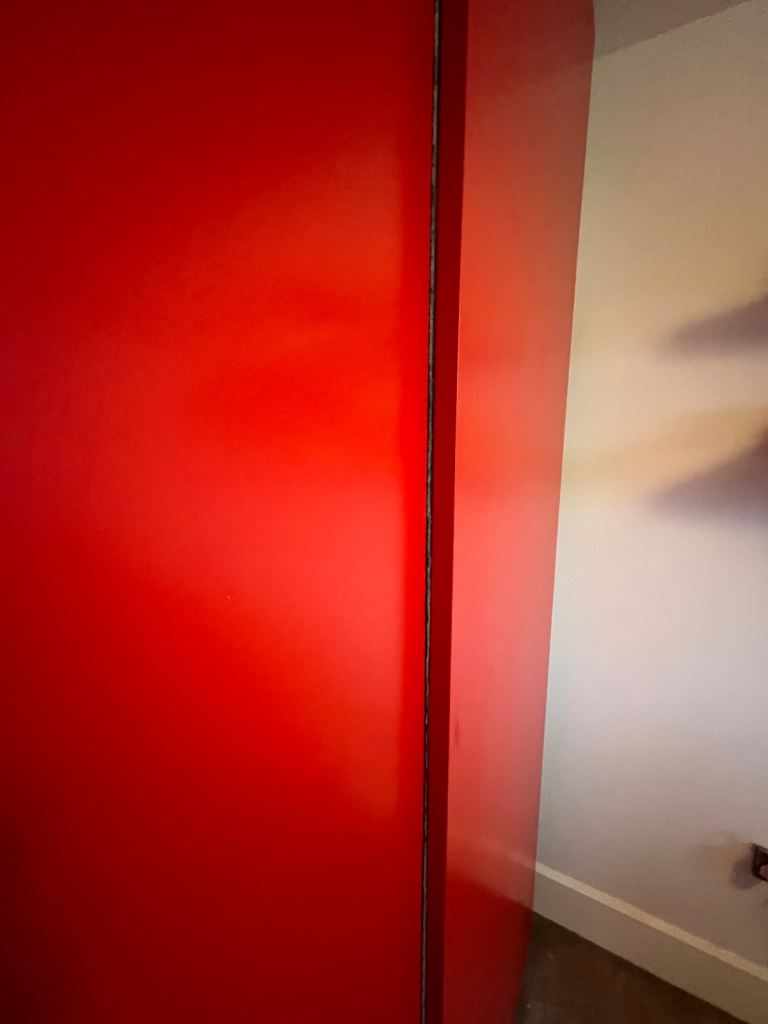 Some scratches on front and in used condition but functions very well, including smooth sliding doors. Shelves can be moved up and down or out as well as shoe rack and drawers.
