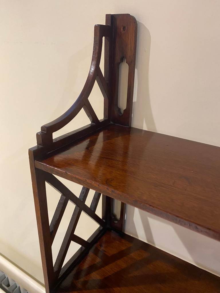 Wall mountable shelves with attractive lattice work sides. Height 24", width 24", depth 6"
