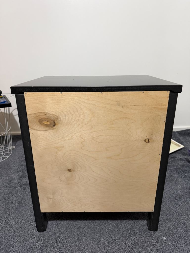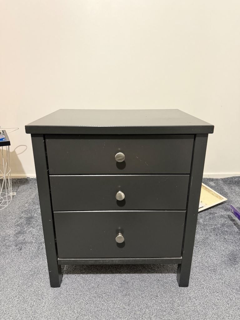 There are some minor cosmetic marks from normal use (see photos), but nothing that affects function. Solid and heavy piece of furniture — ideal for bedroom storage.