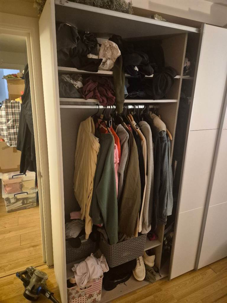Beautiful wardrobe its just to big for my new home. small chip on the mirror bit it is a quality good looking wardrobe. I will take the best offer. It needs to be collected on monday unless you can dismantle it yourself