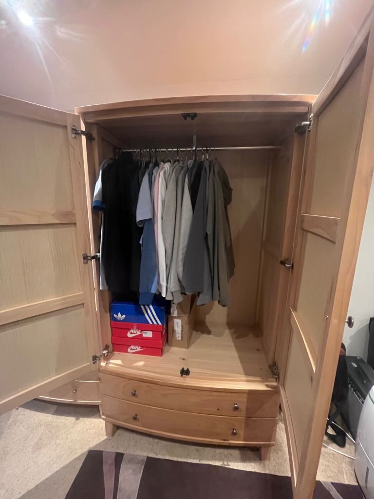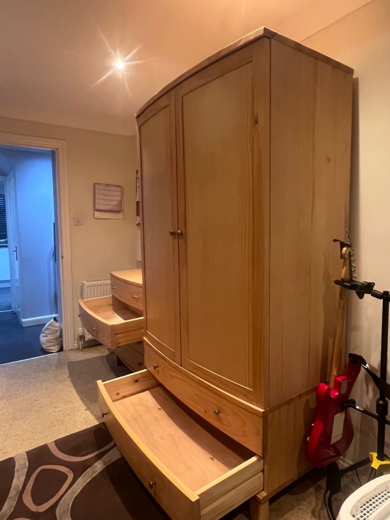 Posting for 1+ yearsSolid pinewood wardrobe and chest of drawers