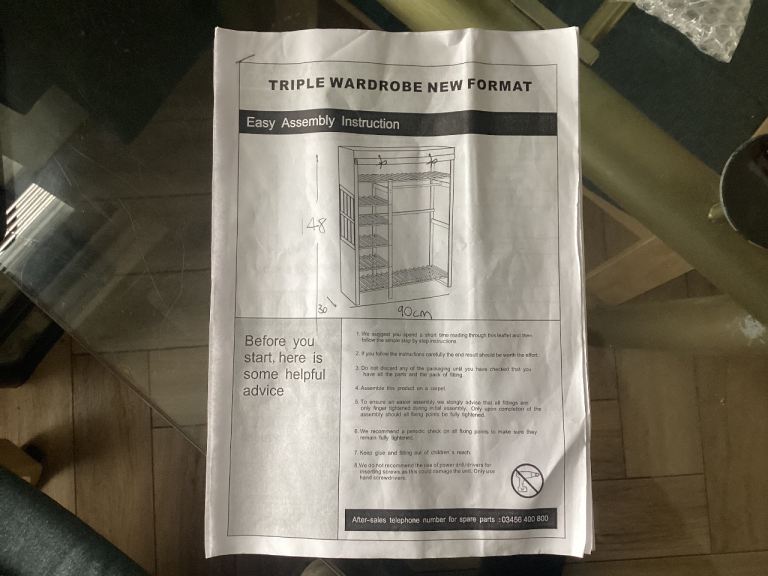I have disassembled the wardrobe so it can fit into a car. I have the instruction manual, the screws and everything to put this back together. It’s a very easy assembly