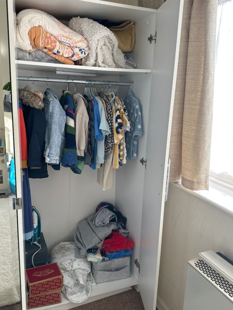 These are two wardrobes put together side by side.Would give away individually if wanted.One side has mirror crack which has been covered with adhesive to prevent bigger crack or cuts.