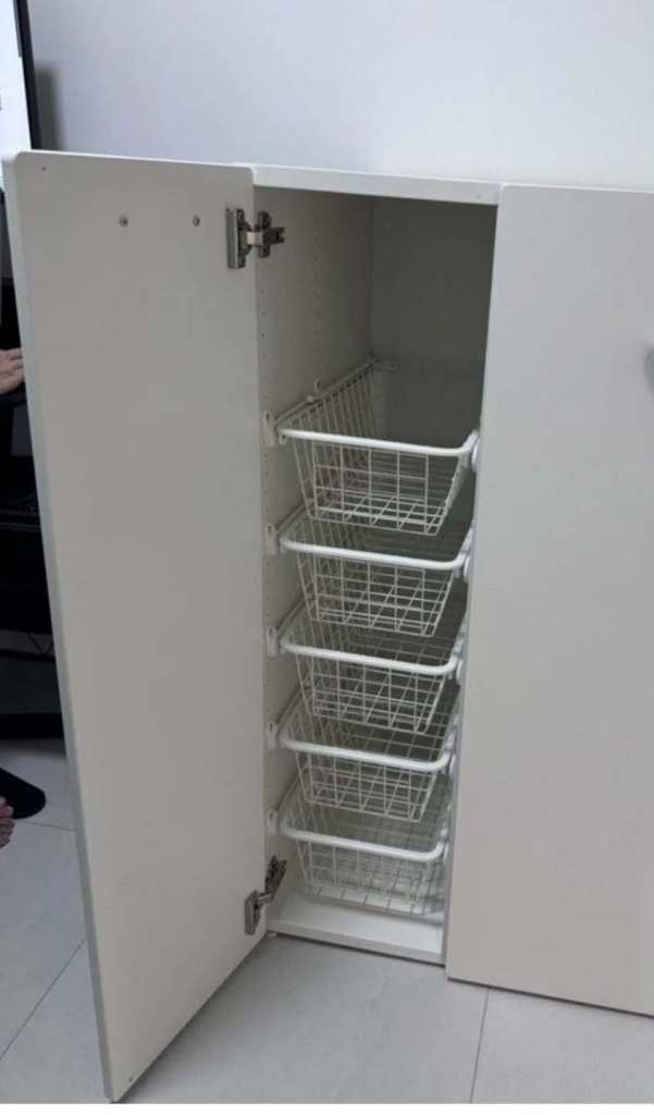Five baskets can be pulled out of the cabinet.