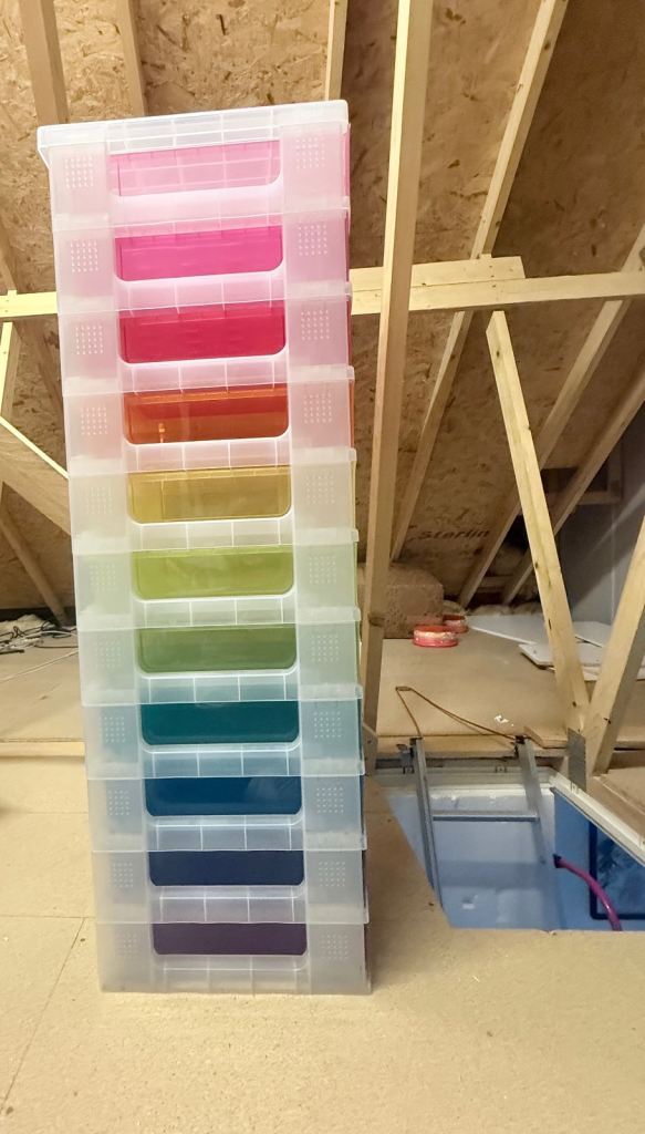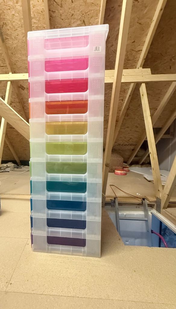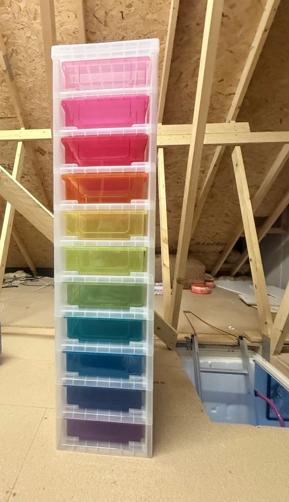 Good condition, badly used set of 11 drawers in rainbow colours. There is some scratches on the green drawer seen on picture does not effect use.