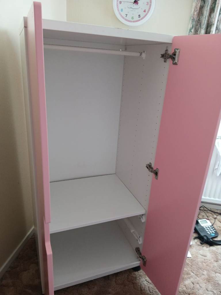 Lovely pink stuva wardrobe in very good condition. This has hardly bern used. We got it before we moved house and now have built in wardrobes in our daughter's room, so it's longer needed.