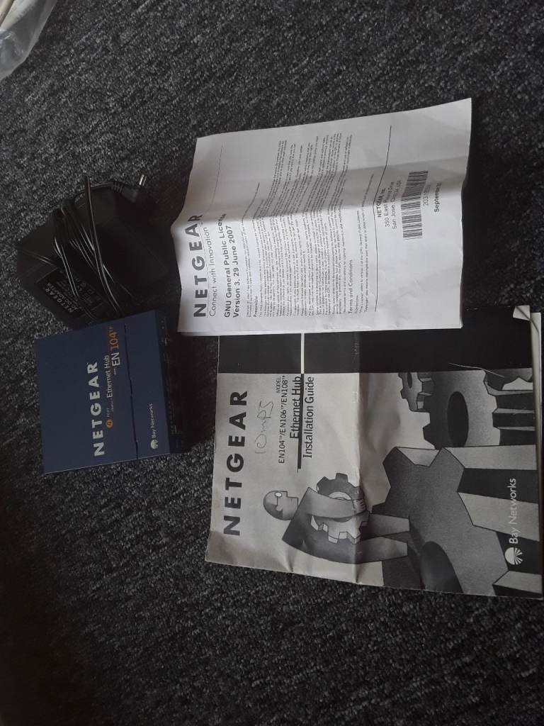 4 port netgear, power cable, instructions, etc. Job lot. COLLECTION, city ctr NR1 1LA