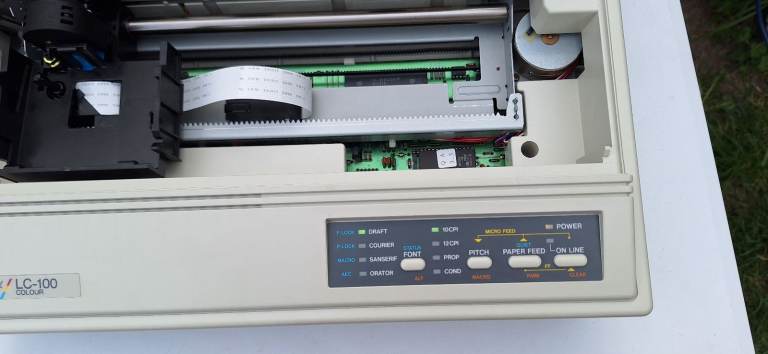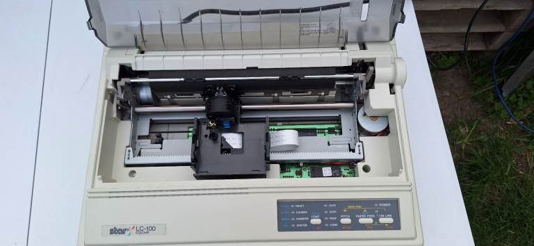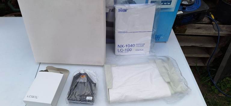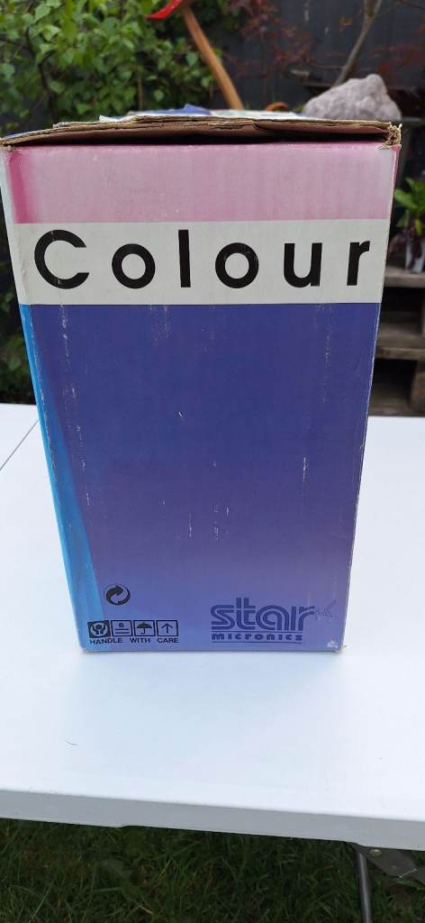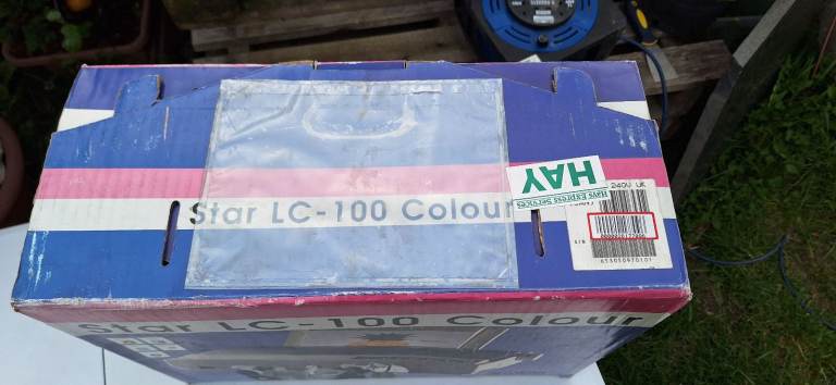 retro star lc-100 colour printer brand new in box as can be seen from the pictures I have unbox and powerd up to check it all OK, manual and inc cartridge included, no other cables. There is some sun fade on box and this is missing the paper scroll wheel on tbe side, Any questions please feel free thanks