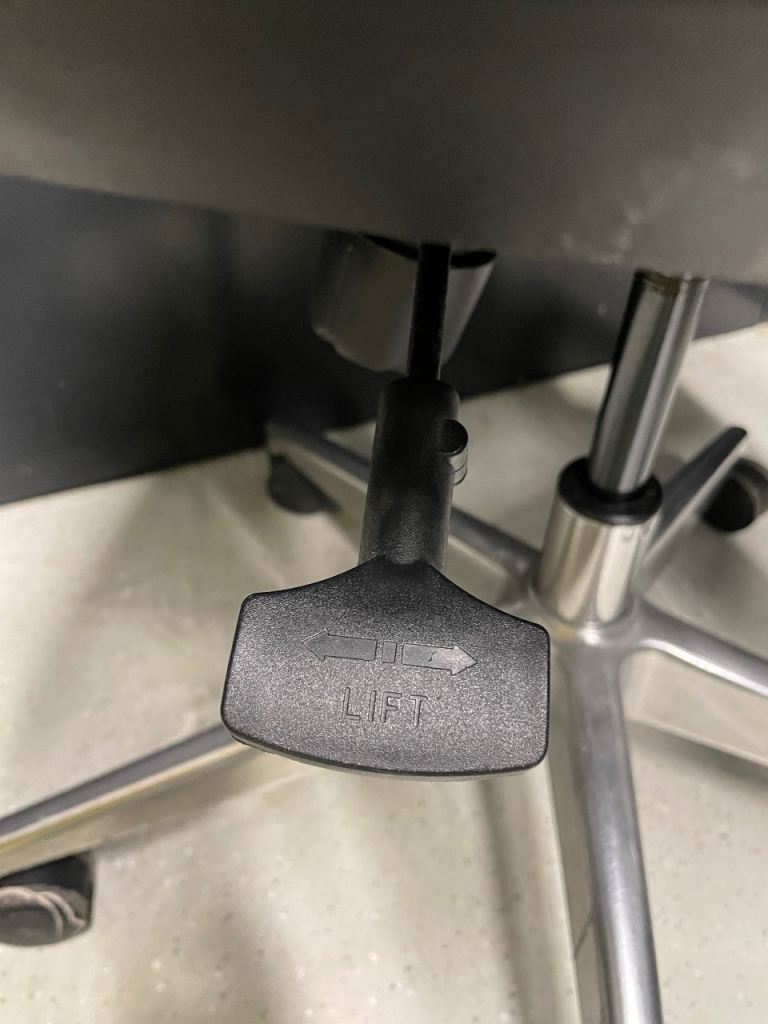 Adjustable height and seat forward/backward. Also arm rest flexible, can go up / down, right / left, forward / backward.