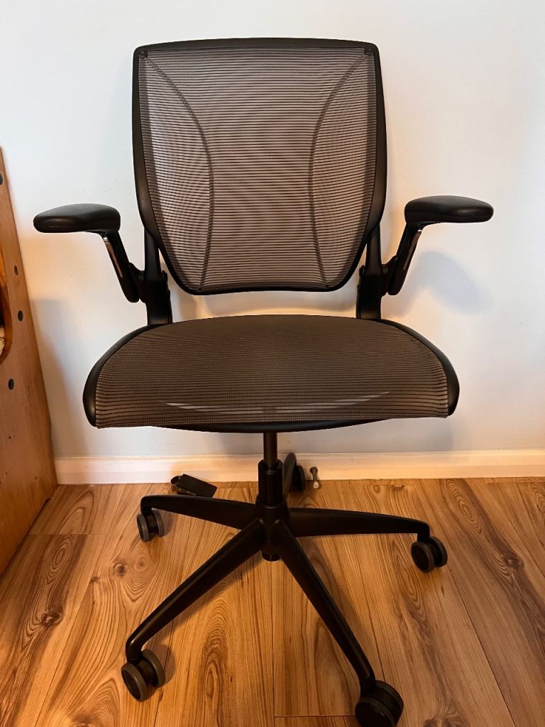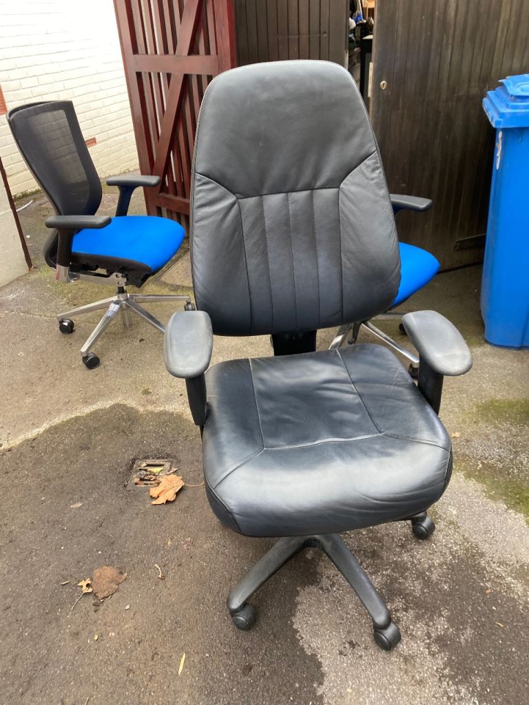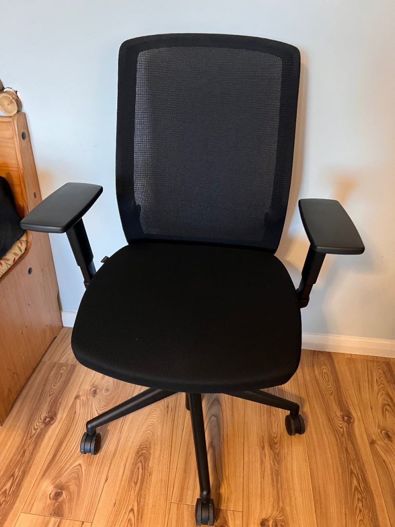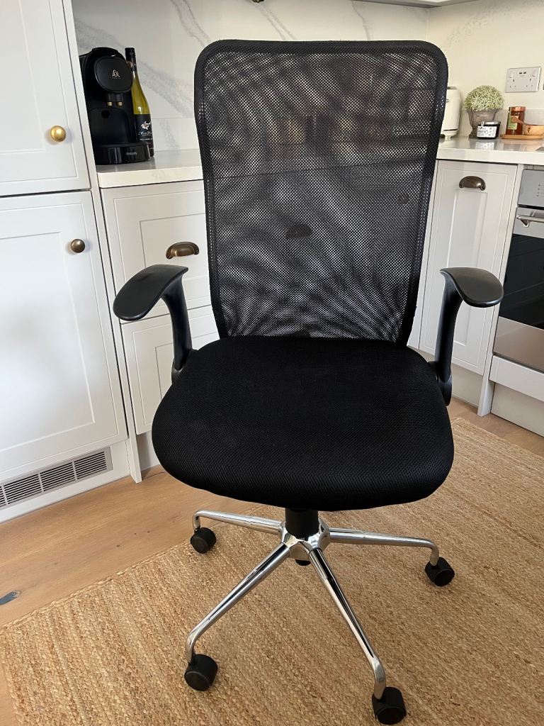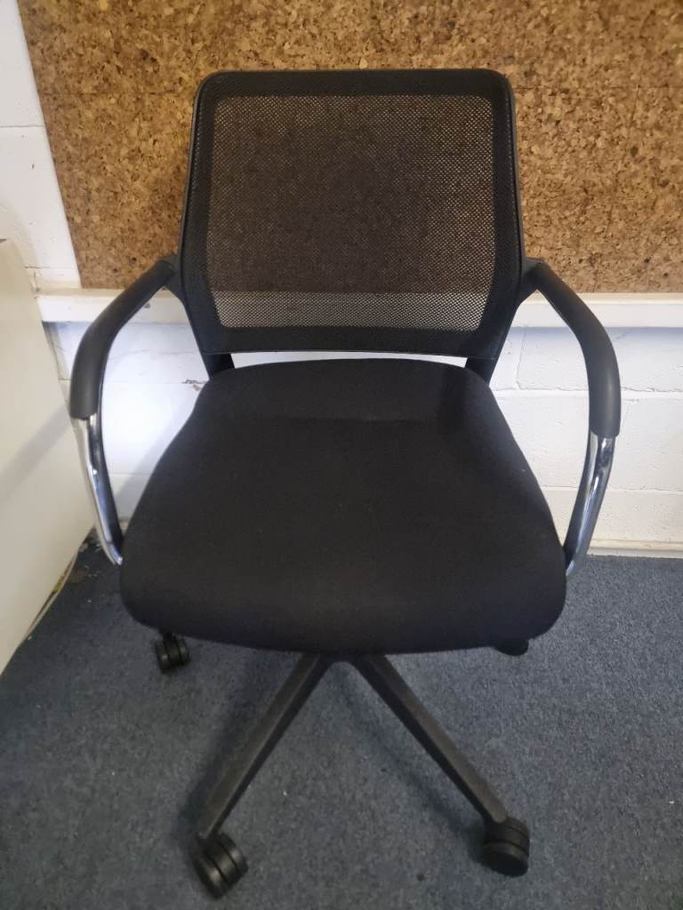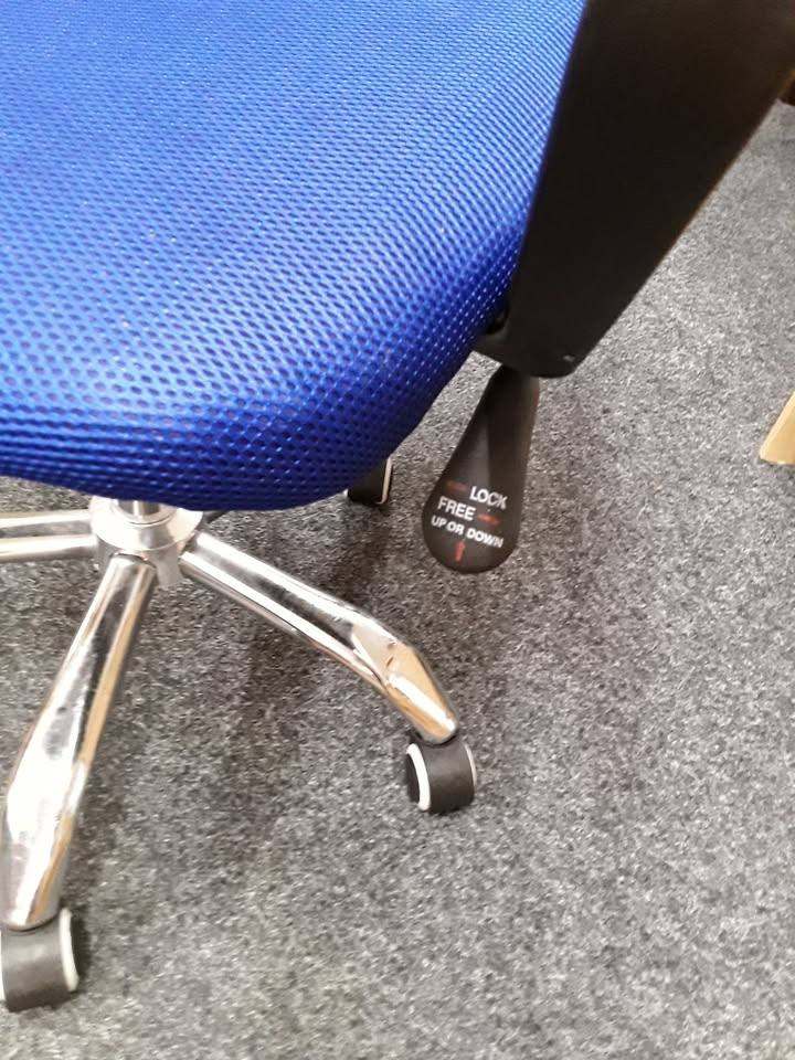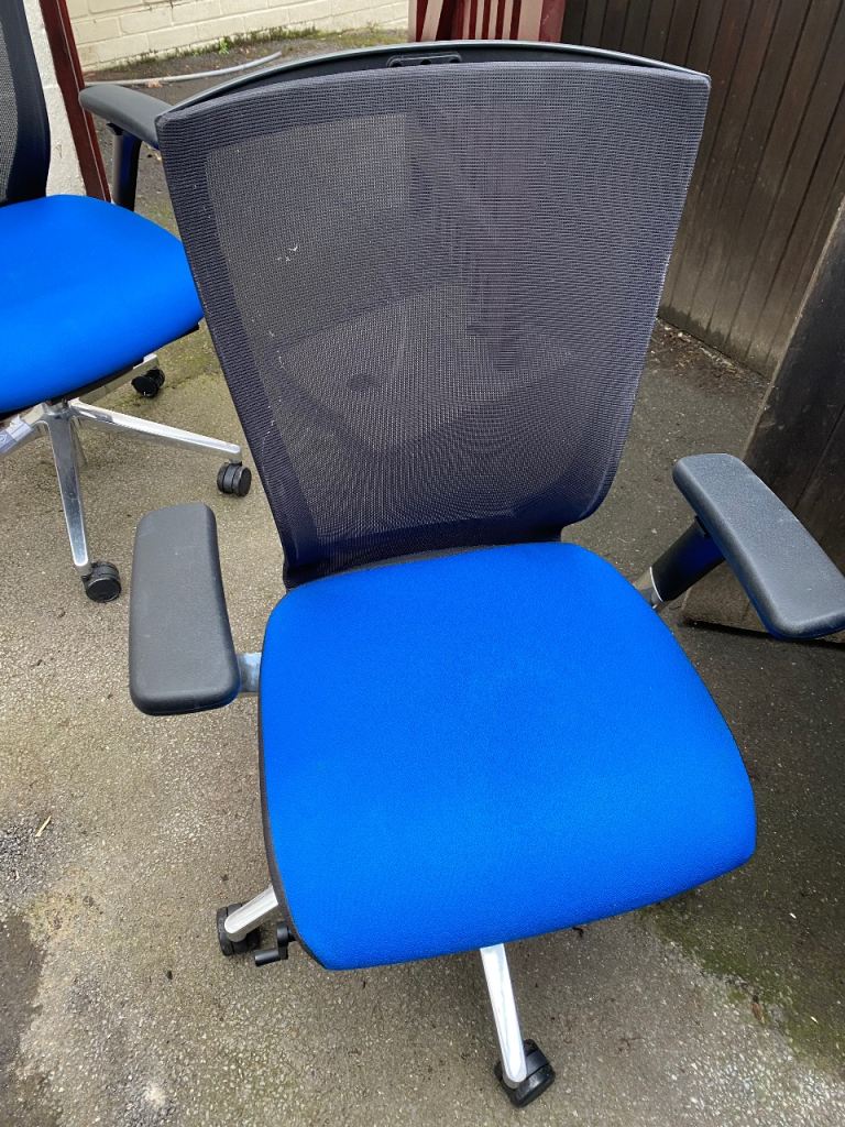 This blue mesh fabric and chrome office chair is in very good all-round used condition. The height can be operated by the pump gas action handle. Nice and comfortable to sit on...