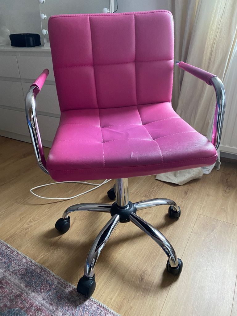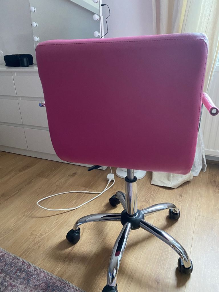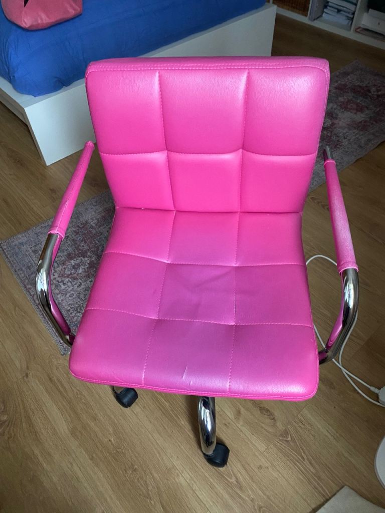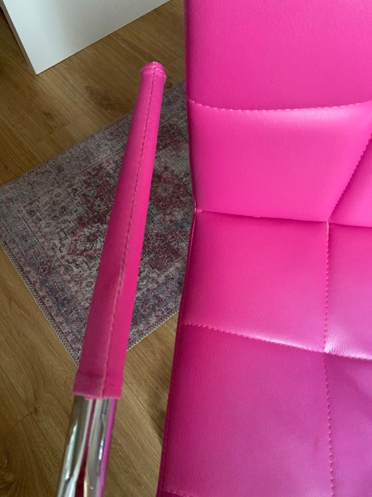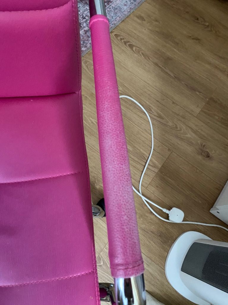 Posting for 6+ yearsCharles Jacob pink swivel chair (faux leather)