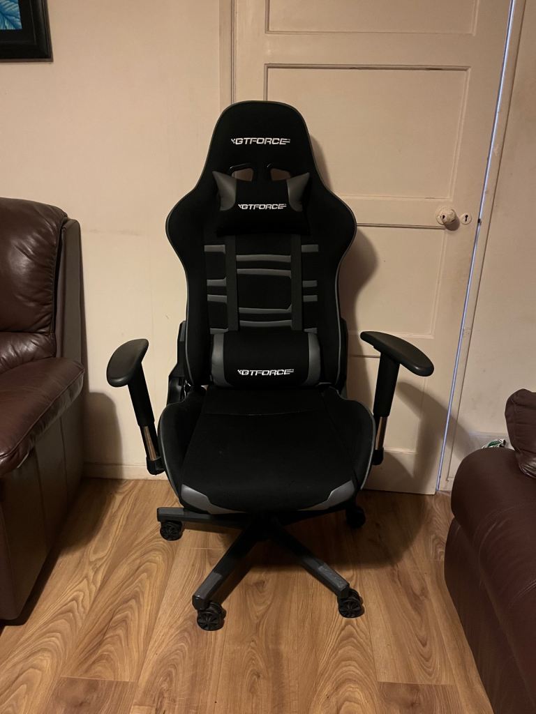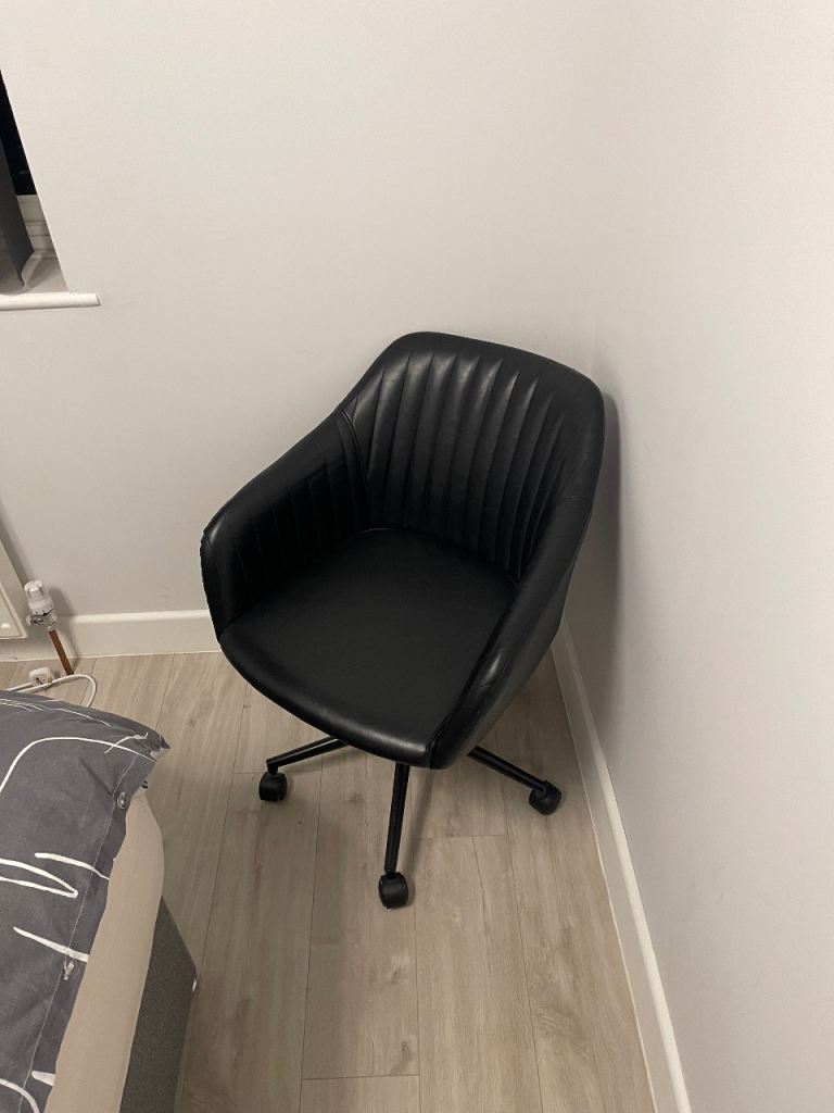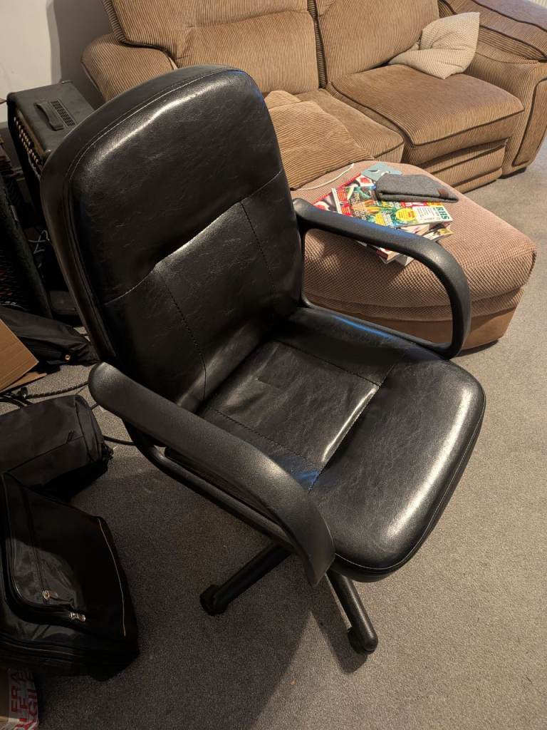Black Office / Computer Chair, mesh back, padded seat on wheels, excellent condition.