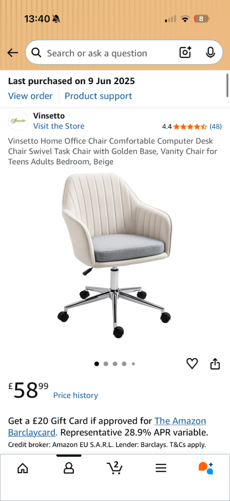 Posting for 1+ yearsCream Desk Chair with Wheels