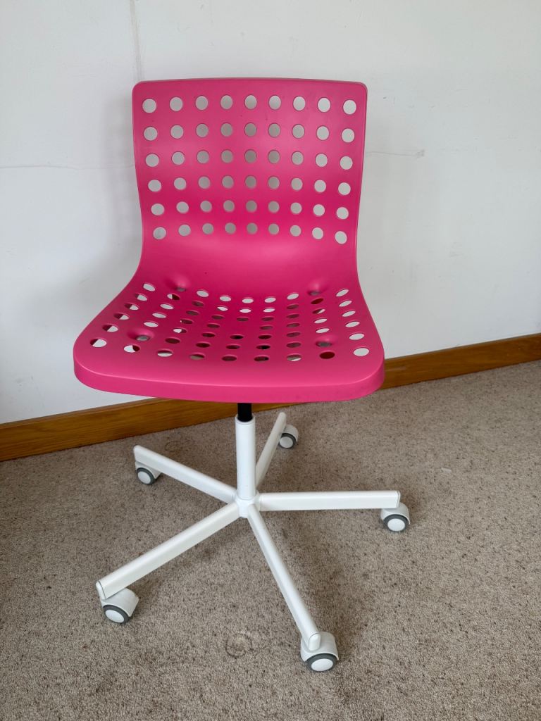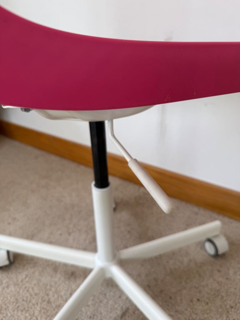Desk Chair / Office Chair IKEA, Colour - Pink with White Roller Feet.Adjustable Height.Excellent Condition.