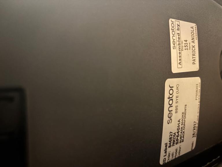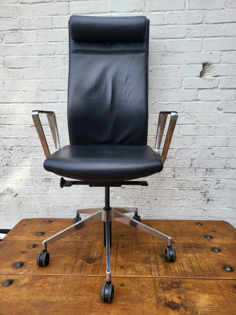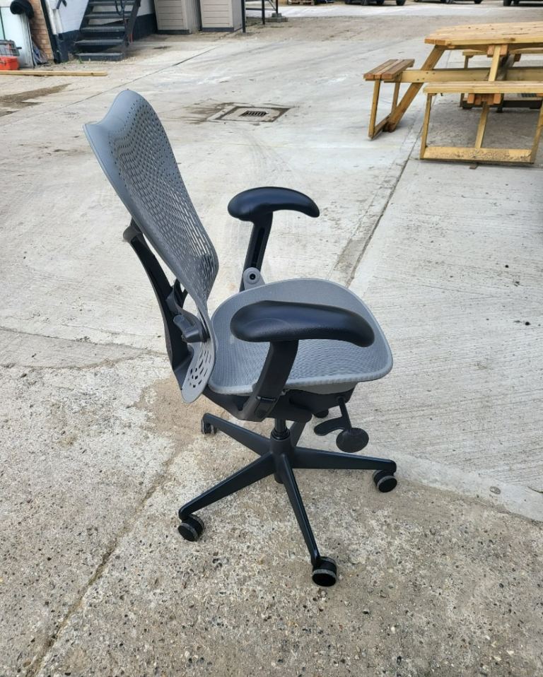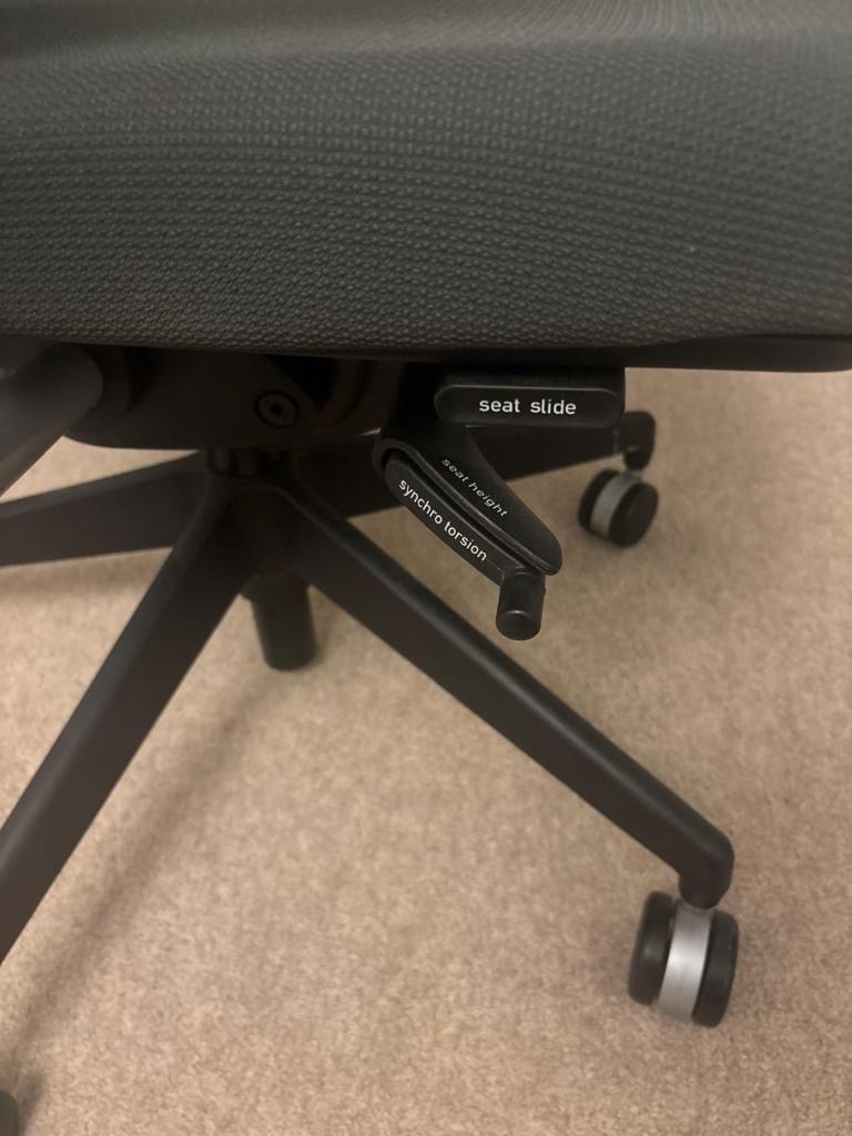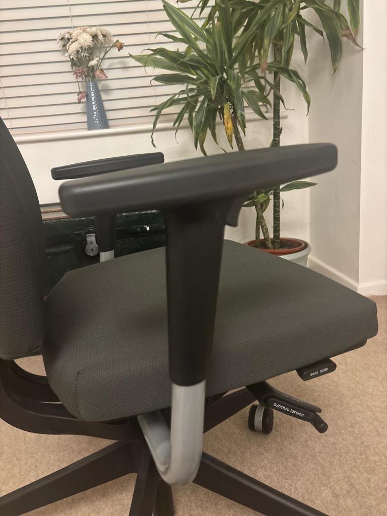 – Ergonomic chair with full adjustments for height, depth, tilt, and lumbar support.