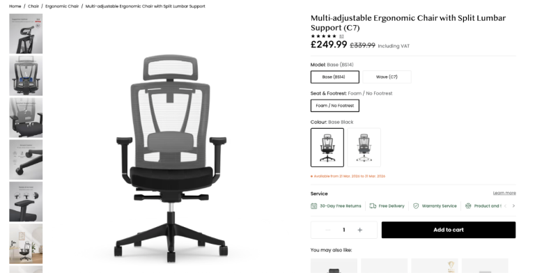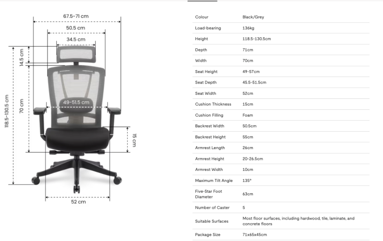 More chair details on FlexiSpot website, just search for the C7.